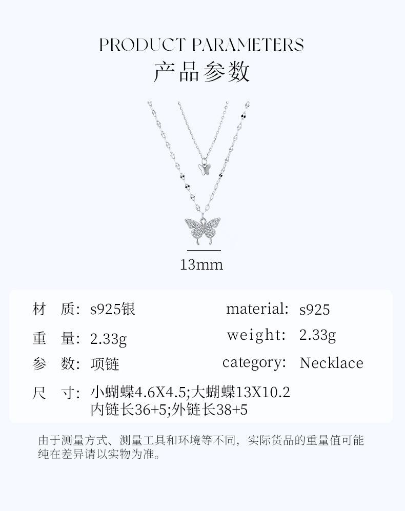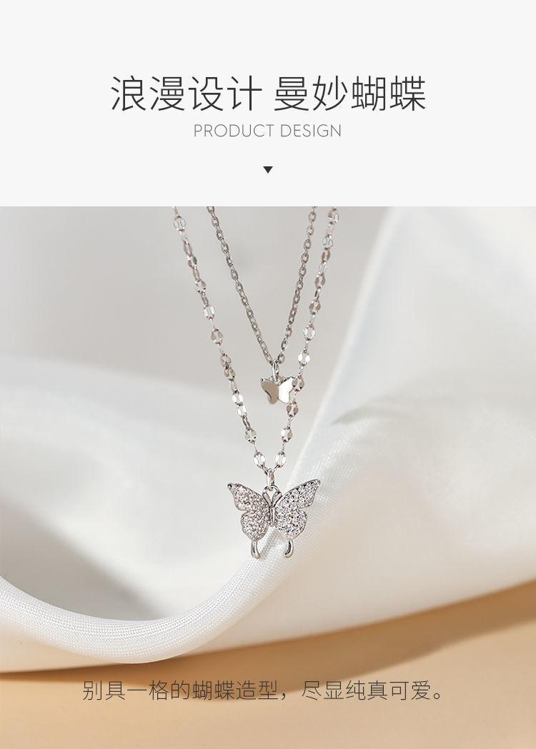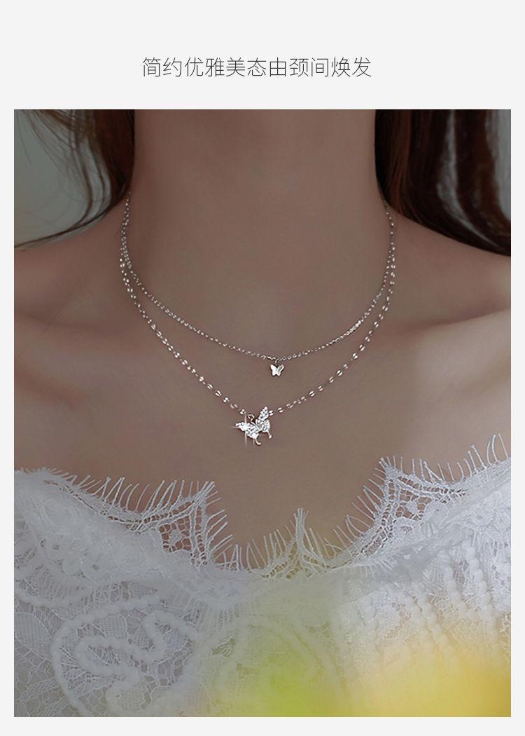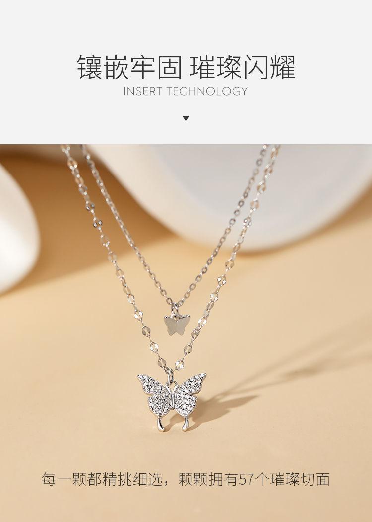 Collar de mariposa de doble capa de plata esterlina s925 de Sweet Niche, con temperamento japonés y coreano, colgante de cadena de clavícula de hada de lujo de alta gama.