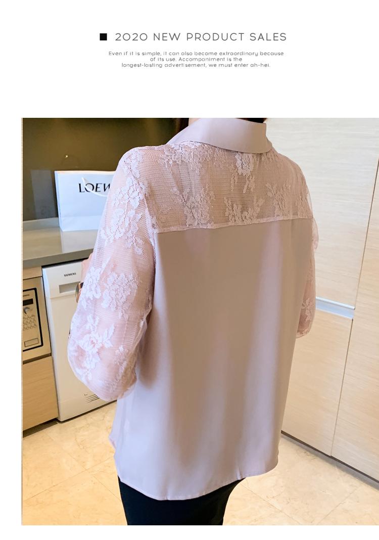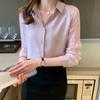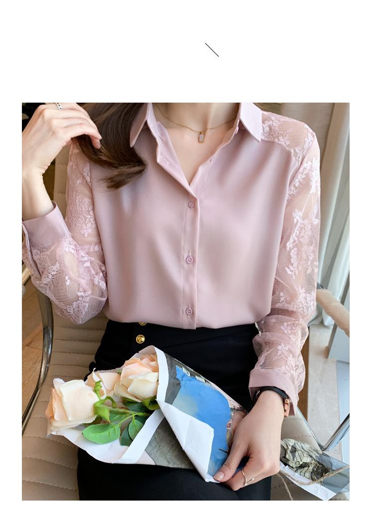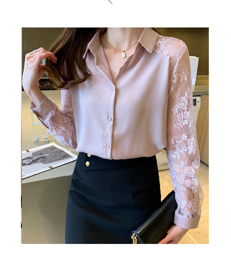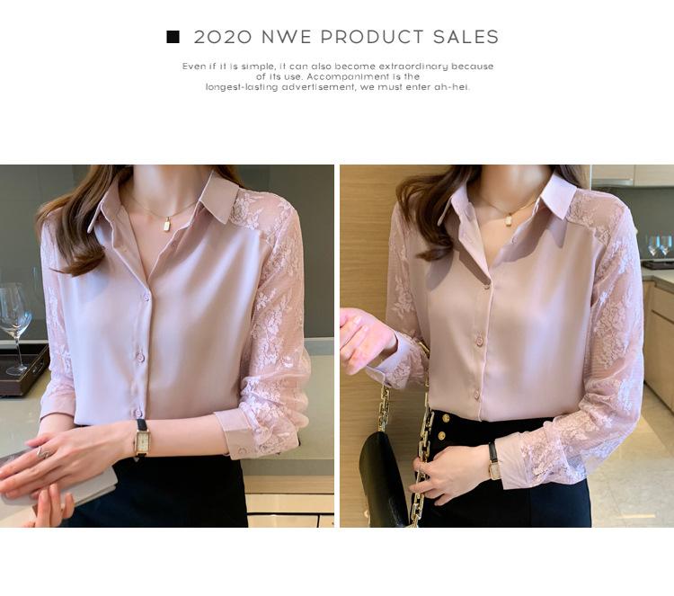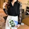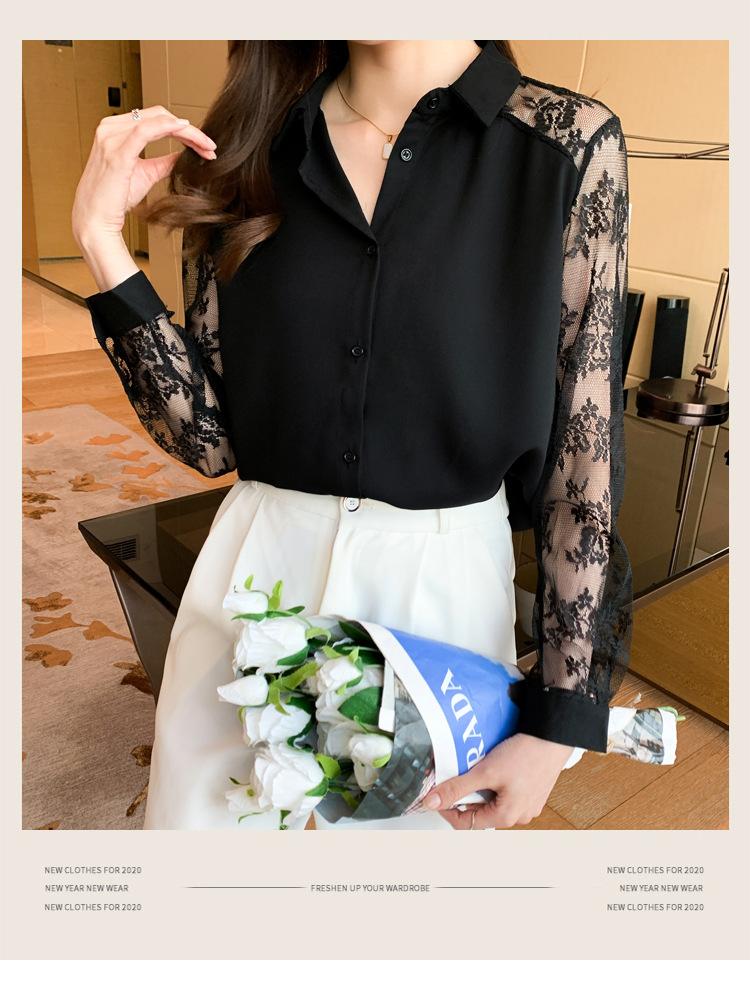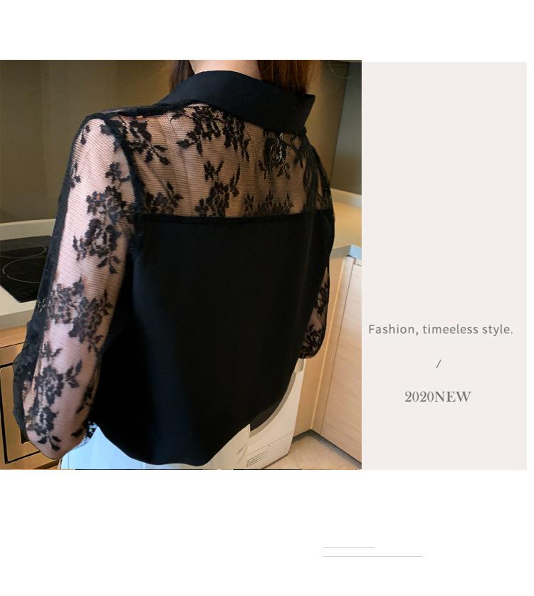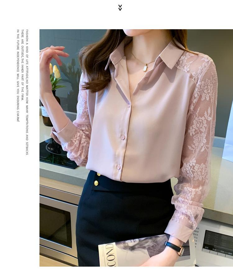 Foto Real de Camisas Tops de Gasa con Encaje en Solapa Estilo Occidental para Mujer Primavera y Otoño 2025 Nueva Camisa Básica tipo Cárdigan