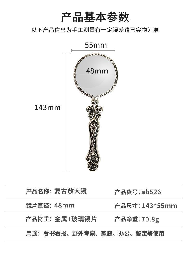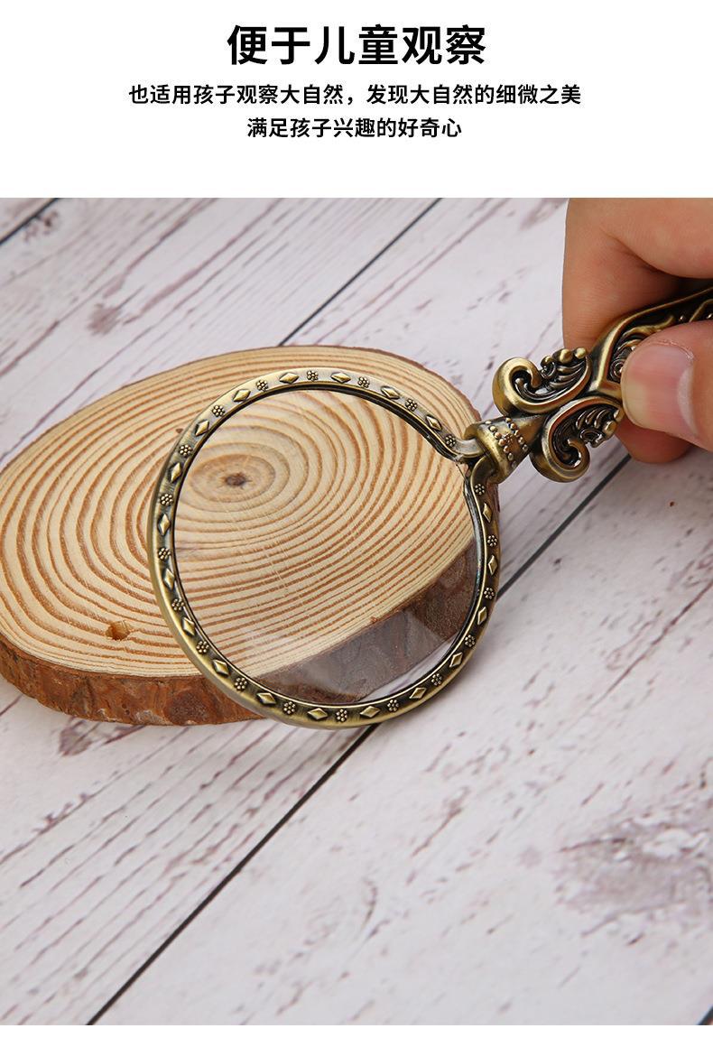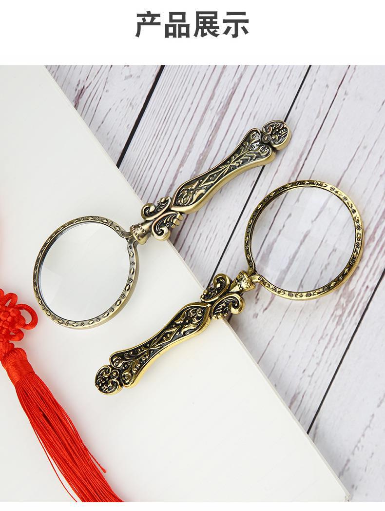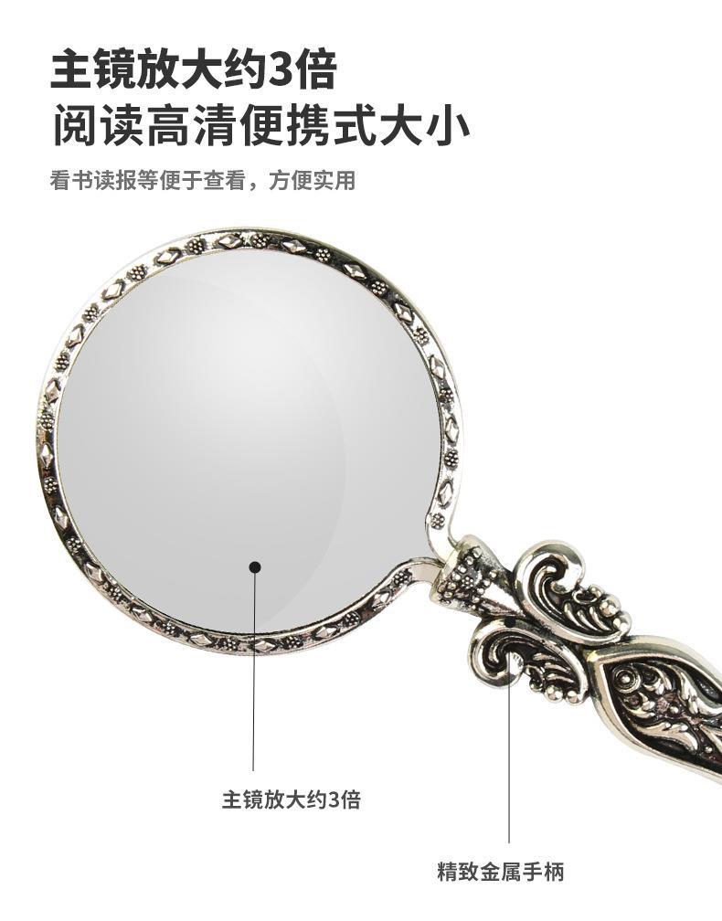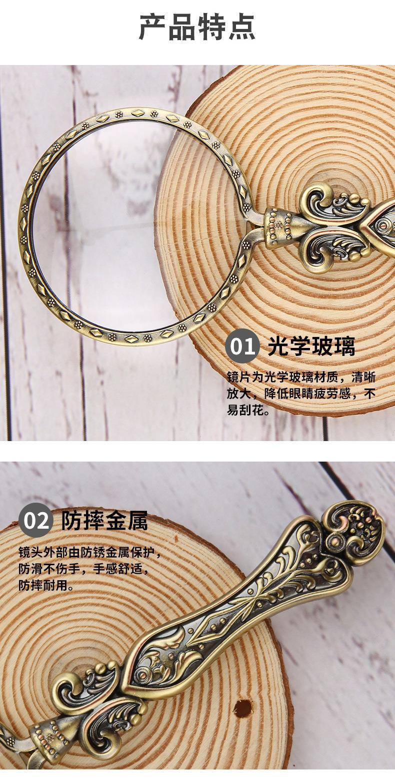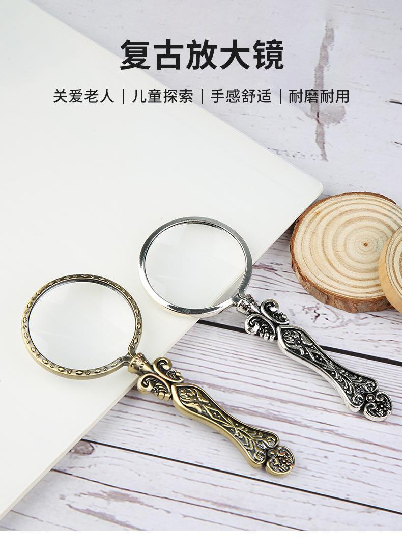 Lupa de lectura portátil de mano con mango de metal retro de alta potencia HD, venta al por mayor