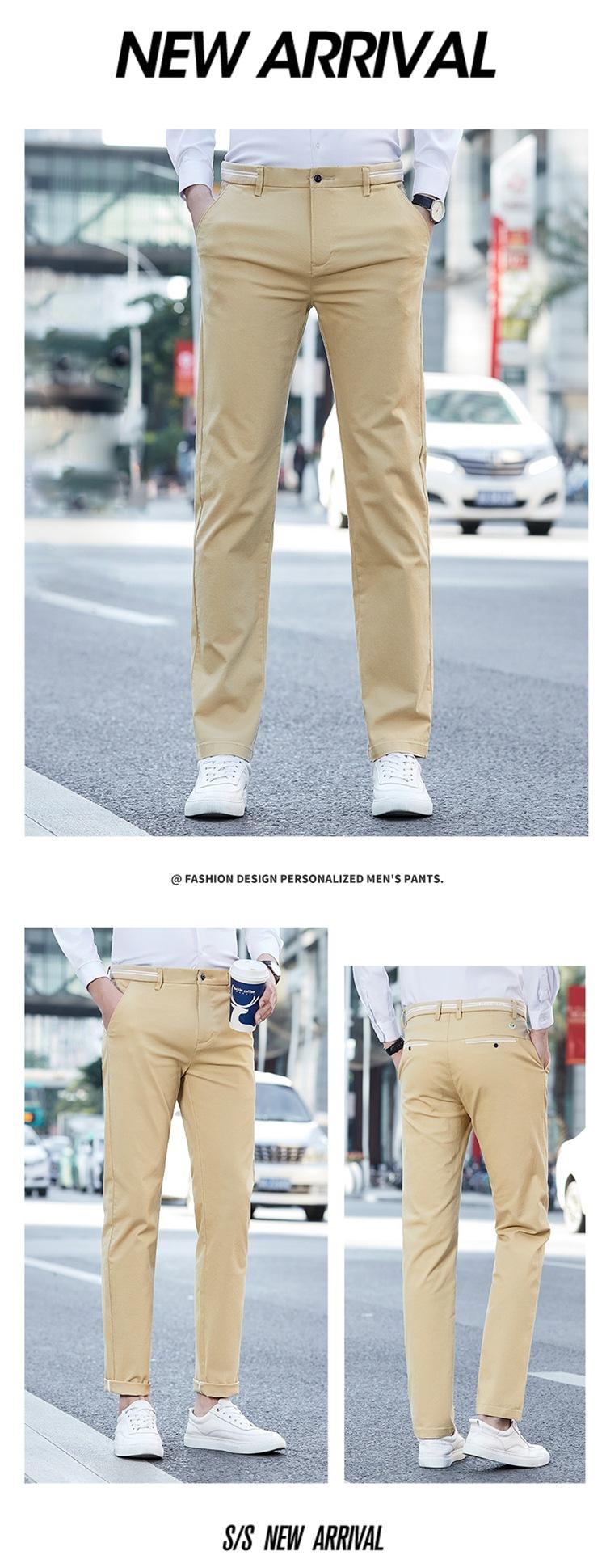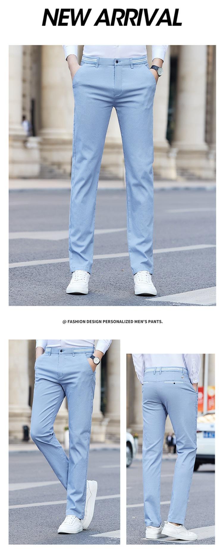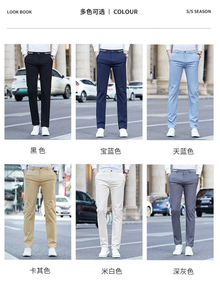 Pantalones a juego de moda para hombre, nuevos pantalones elásticos rectos ajustados de estilo coreano, pantalones casuales de algodón de verano para hombre, moda
