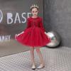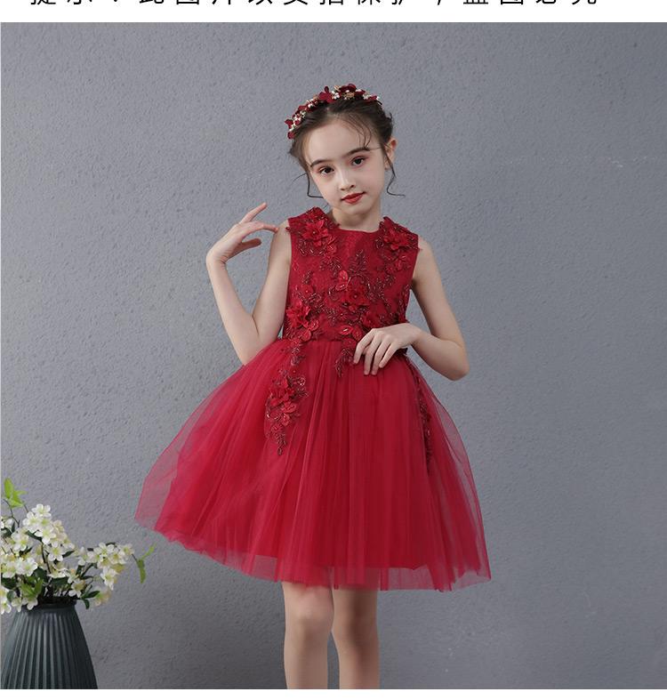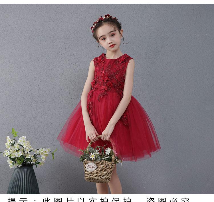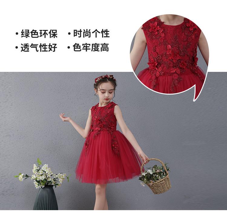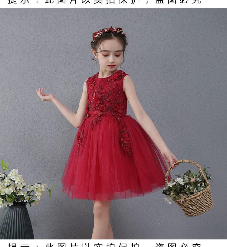 Vestido de niña 8 años vestido de princesa 6 niñas hilo abullonado 9 cumpleaños 7 niñas vestido de boda niña de las flores actuación estilo occidental rojo vino