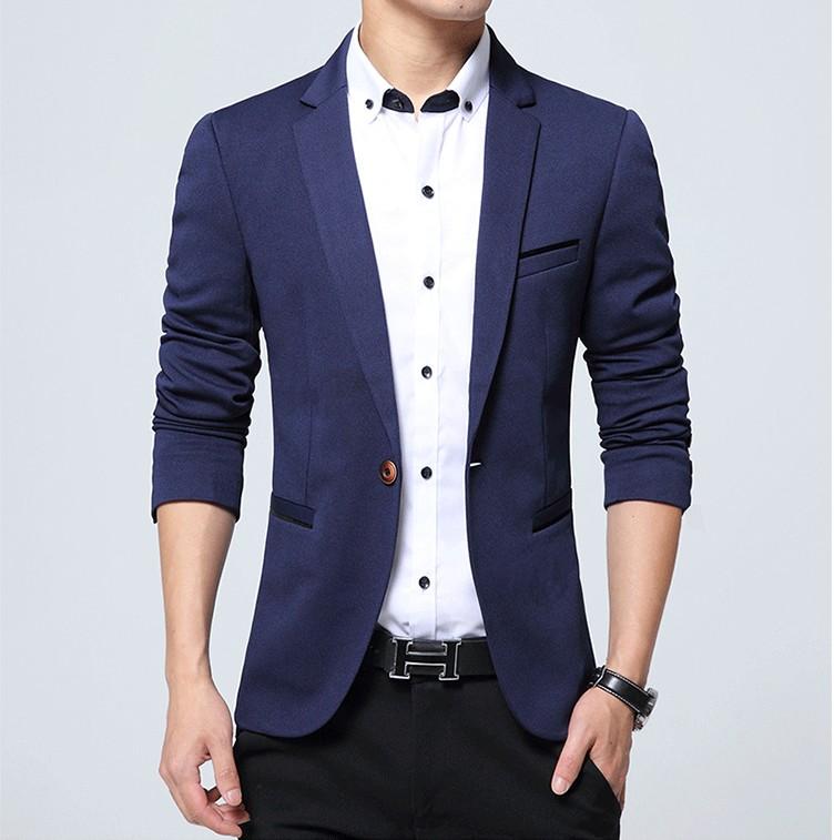 Traje de primavera y otoño para hombre, estilo coreano, juvenil, chaqueta ajustada, traje pequeño, informal, de una sola fila y un botón.