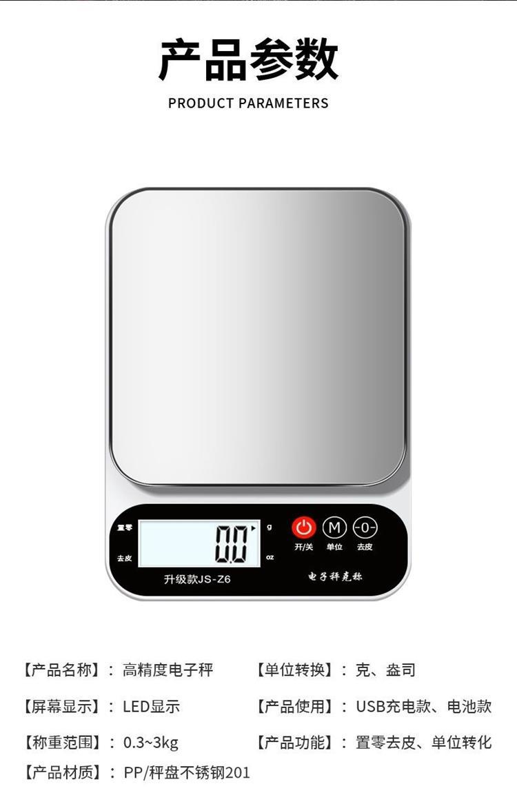 KZ-F3 Nueva Báscula de Cocina Doméstica Acero Inoxidable Impermeable Báscula Electrónica a Prueba de Insectos Báscula de Gramos 0.1GCarga USB Báscula para Hornear