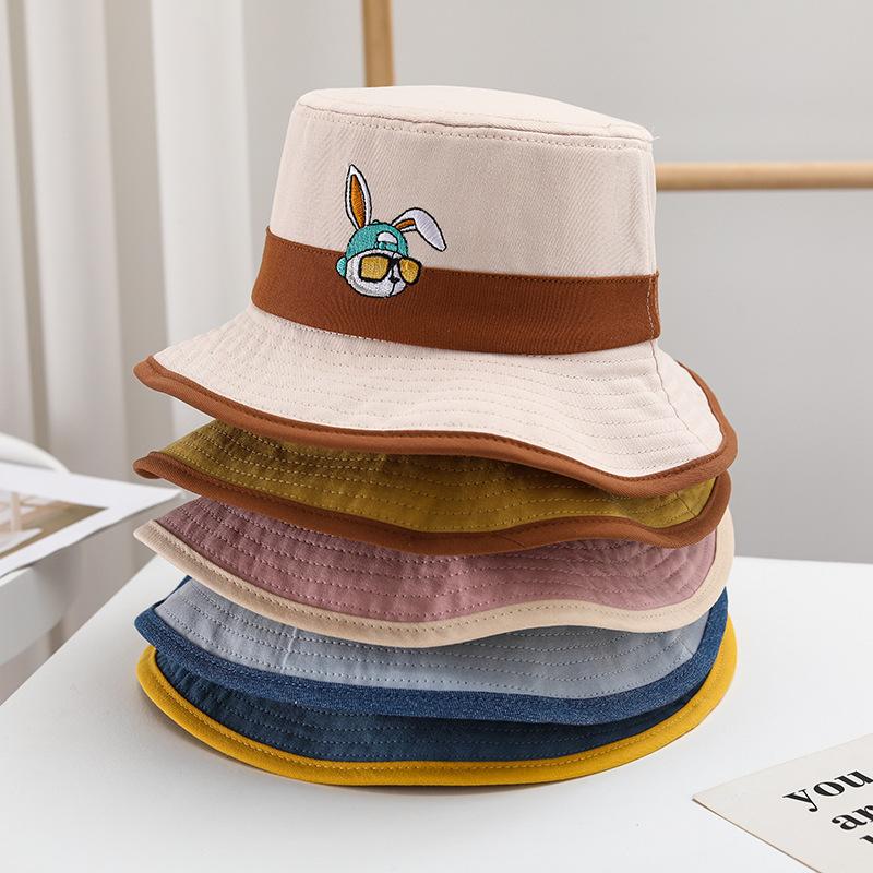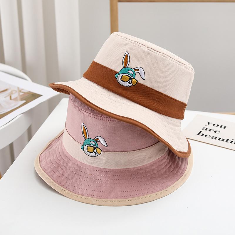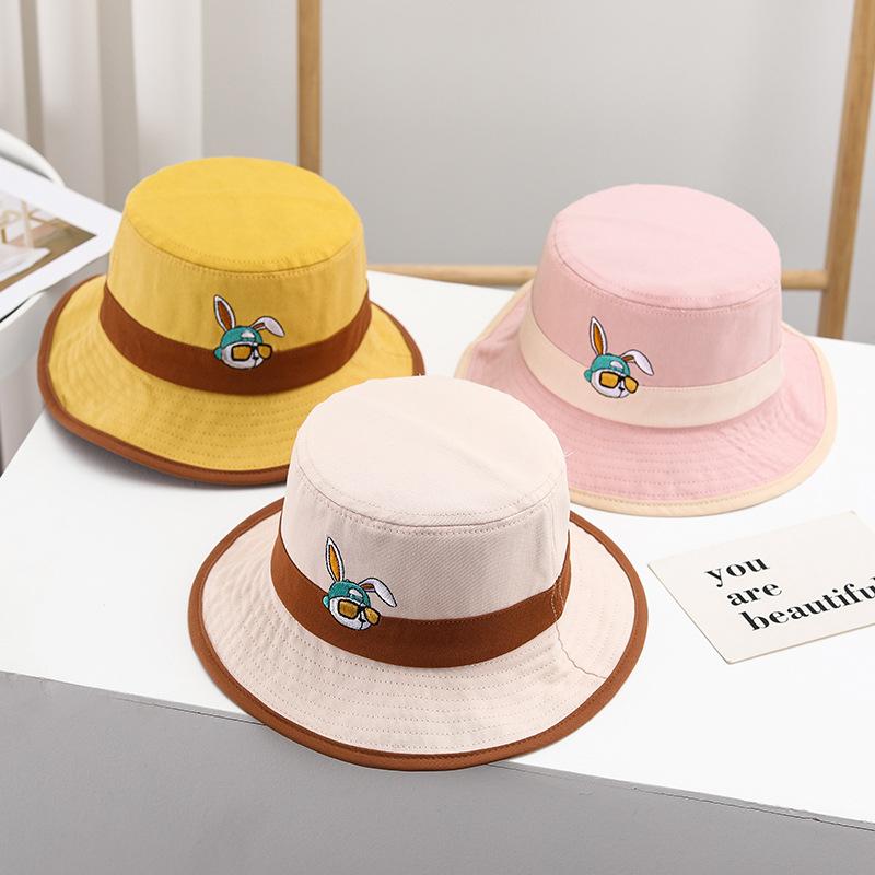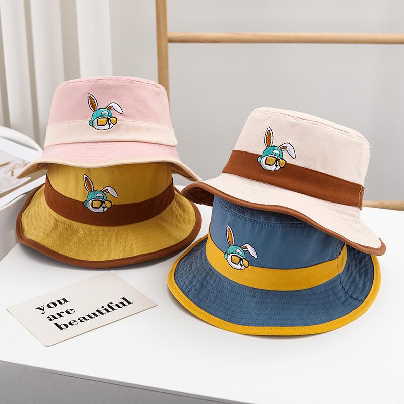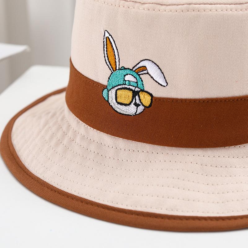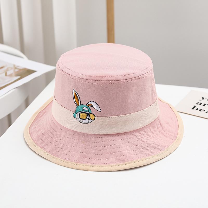 Sombrero de pescador con diseño de conejo de dibujos animados para primavera y otoño, estilo coreano, para bebé, protector solar para exteriores y verano.