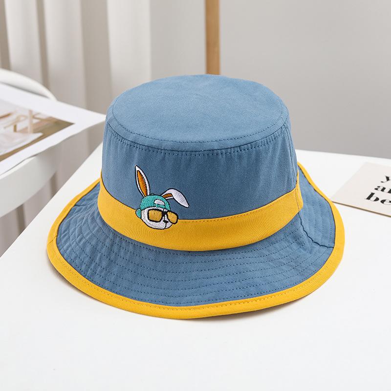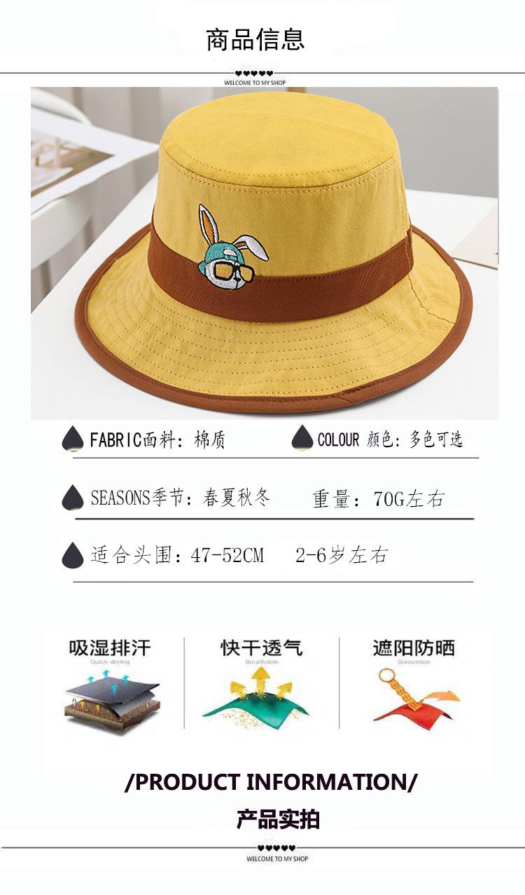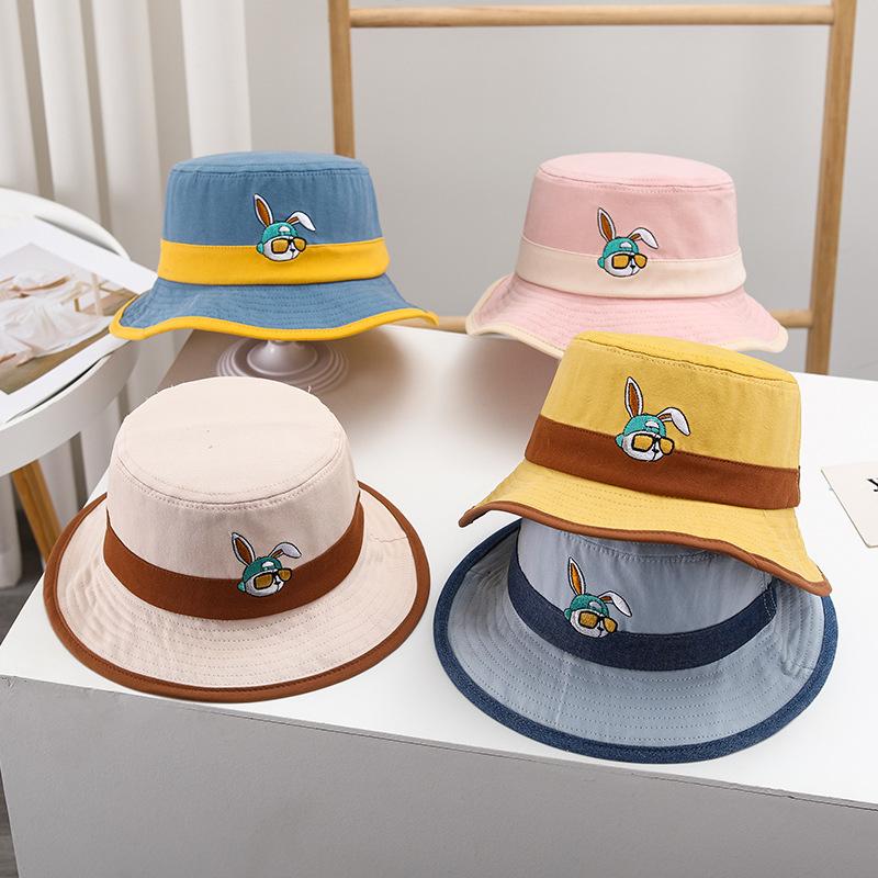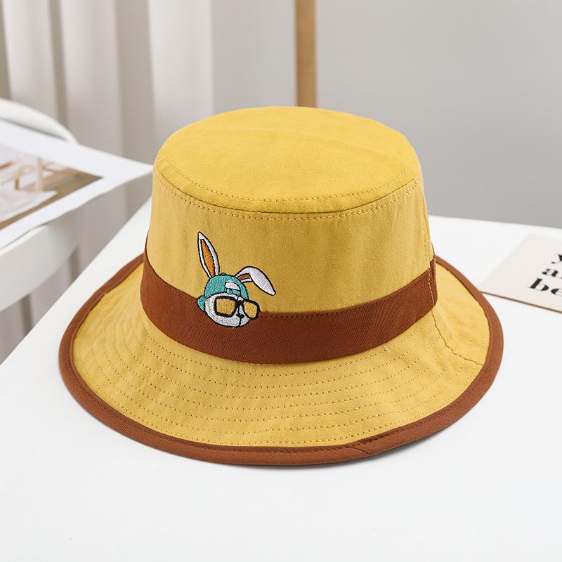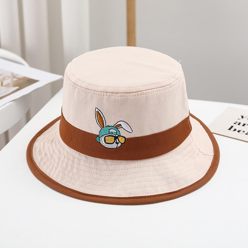 Sombrero de pescador con diseño de conejo de dibujos animados para primavera y otoño, estilo coreano, para bebé, protector solar para exteriores y verano.