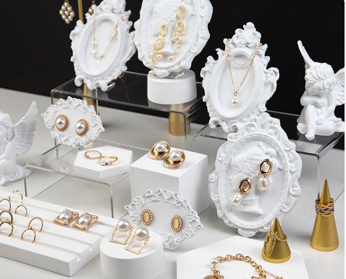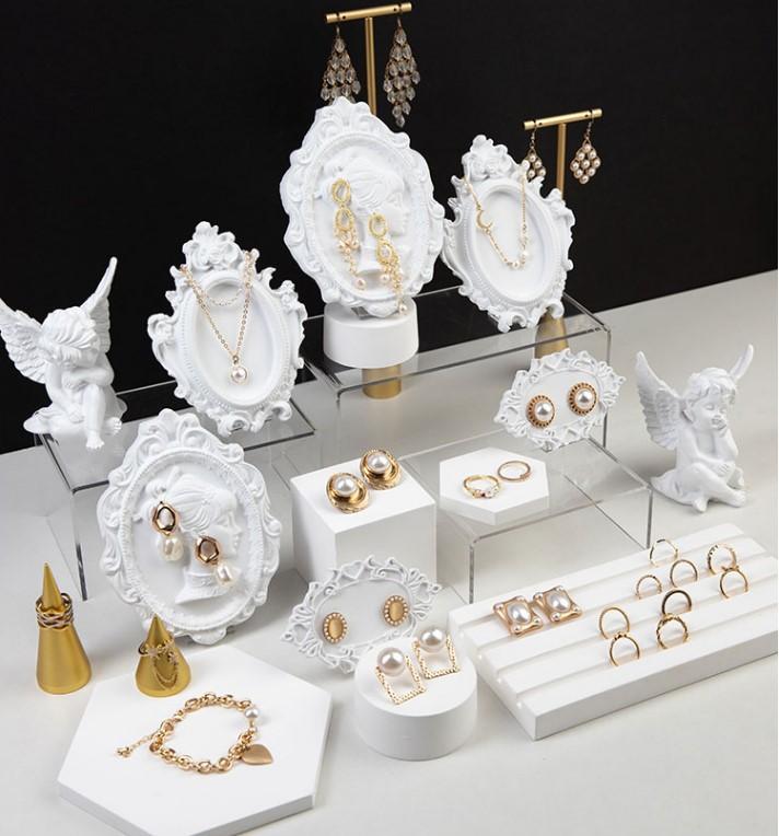 Expositor de joyas de tienda creativa, adornos de yeso, pendientes, anillos, almacenamiento de joyas, accesorios de tiro