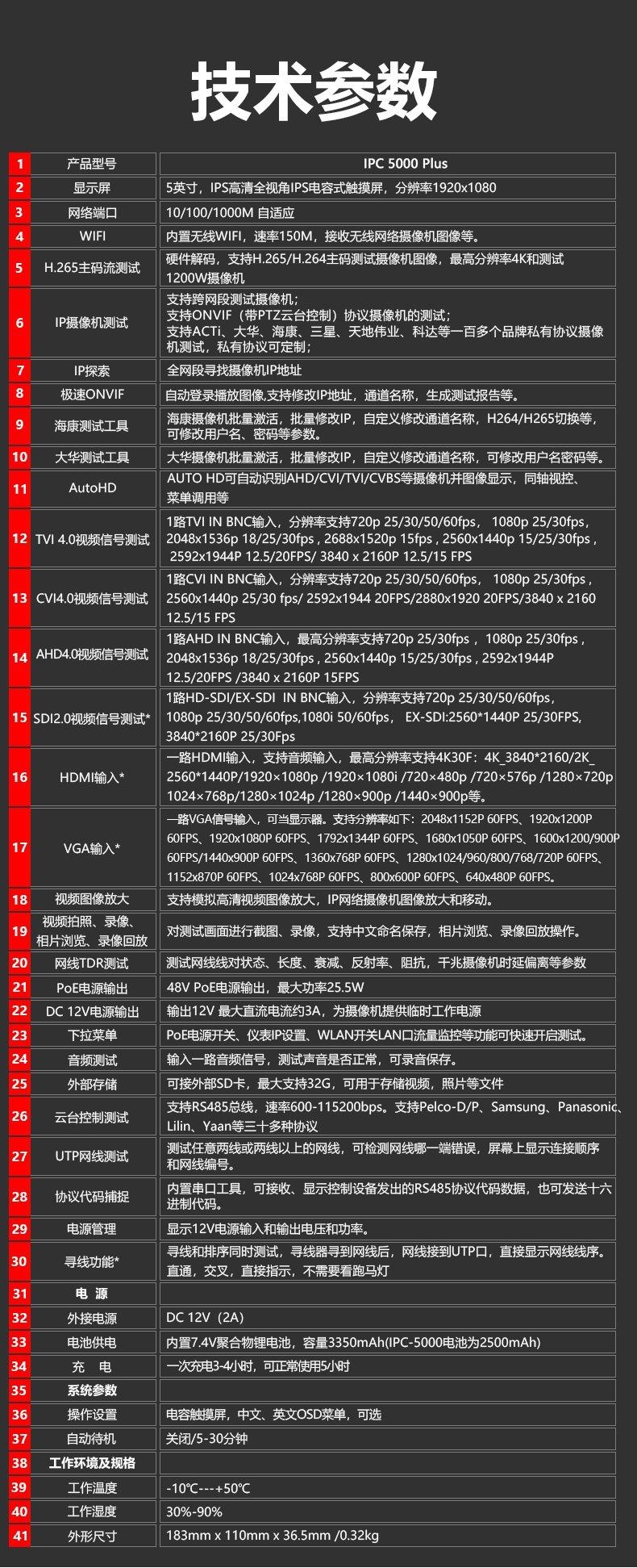 Probador de video IPC-5200C, se muestran los detalles de la función, póngase en contacto con el servicio de atención al cliente para obtener una cotización para obtener un descuento, una gran cantidad obtendrá un mejor descuento.