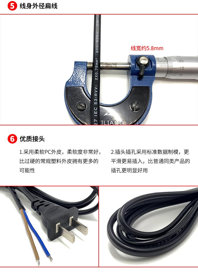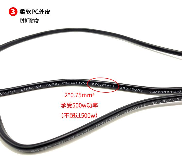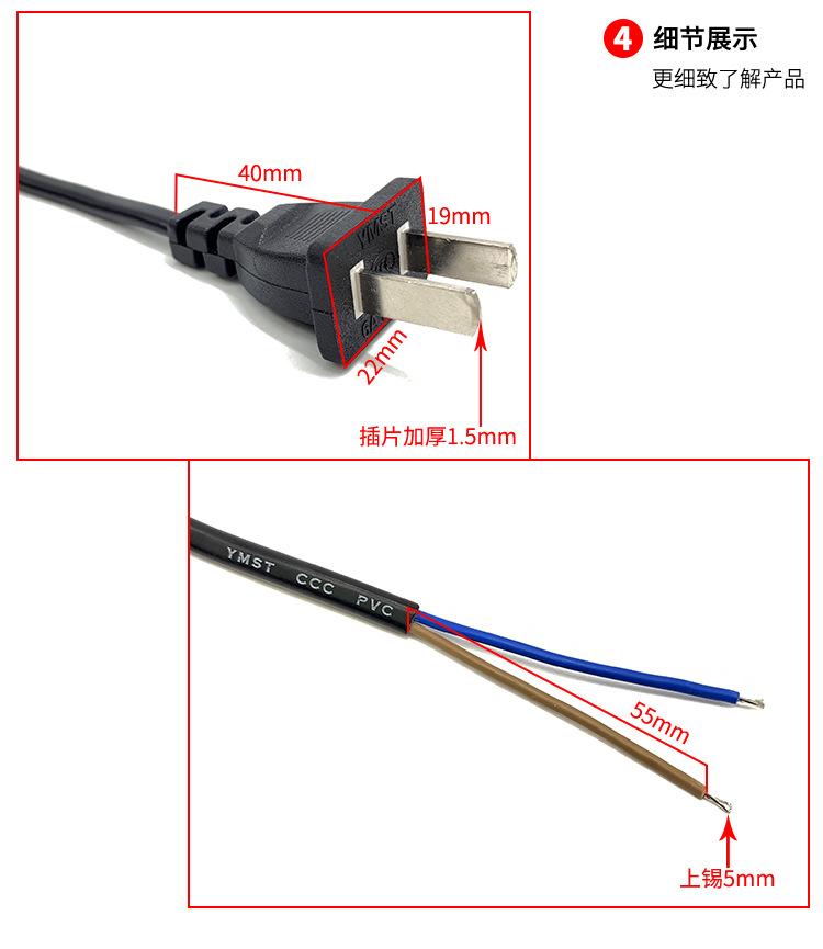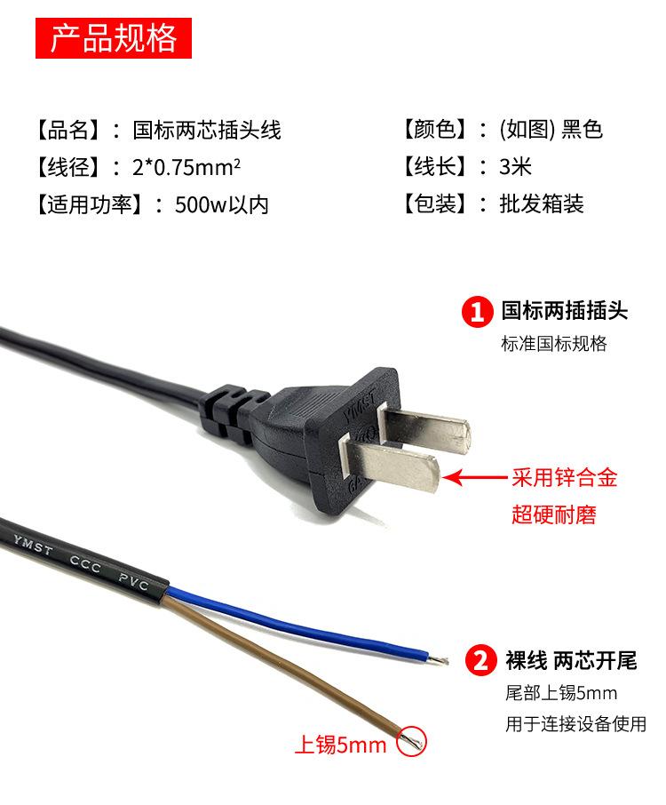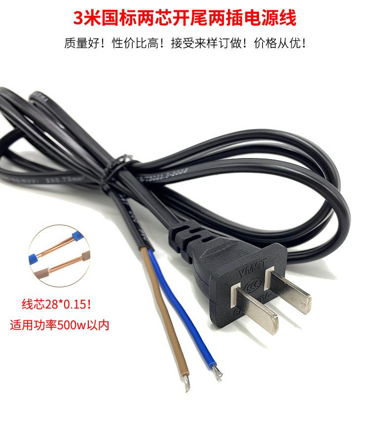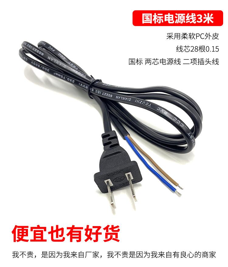 Cable de alimentación de dos clavijas/dos metros directo de fábrica con cable de enchufe, cable de enchufe de dos núcleos, cable de alimentación, cable de enchufe