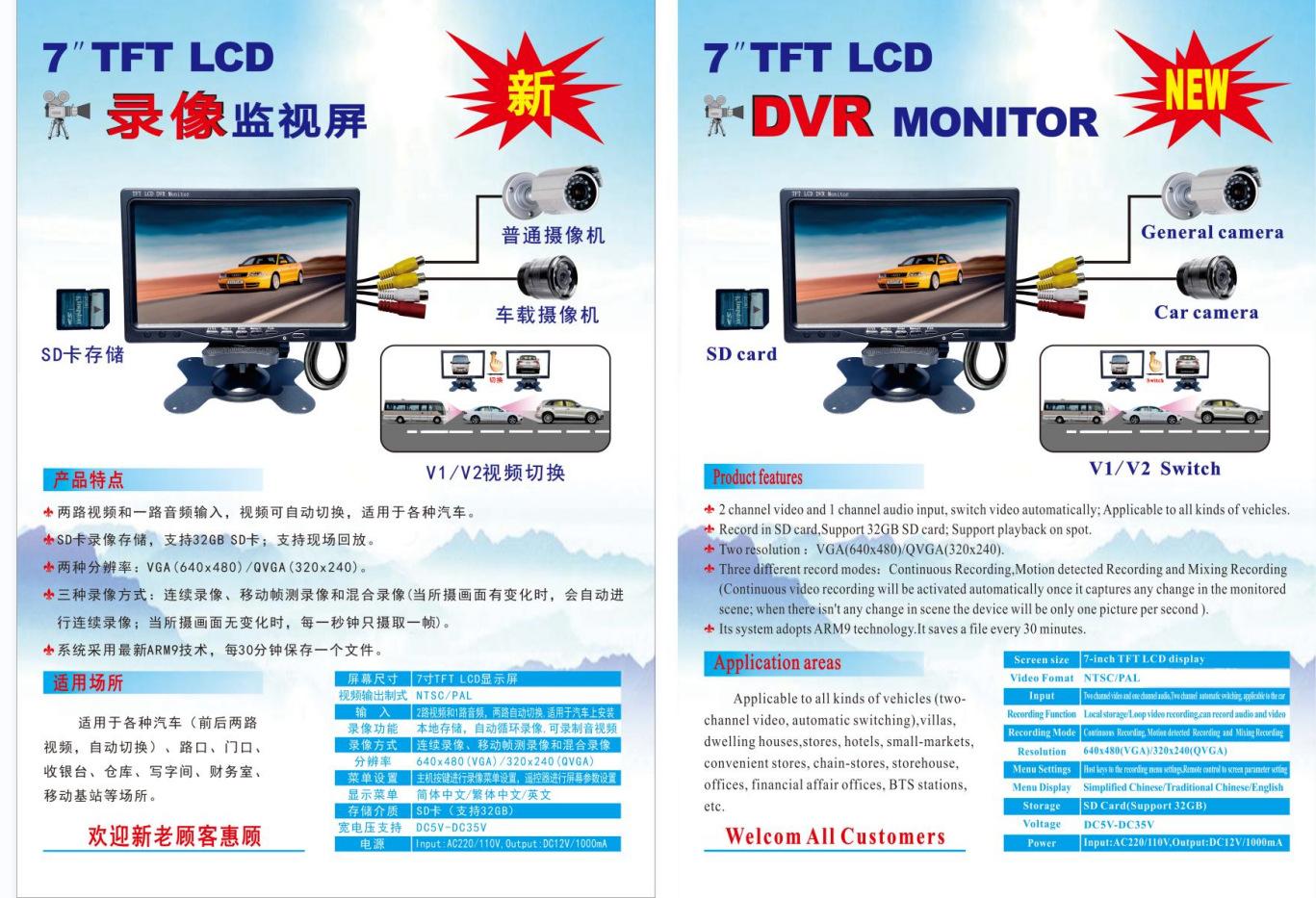 Monitor de coche HD de 7 pulgadas con pantalla de marcha atrás, entrada de vídeo bidireccional, carrito de 24 V, pantalla de monitor de coche universal