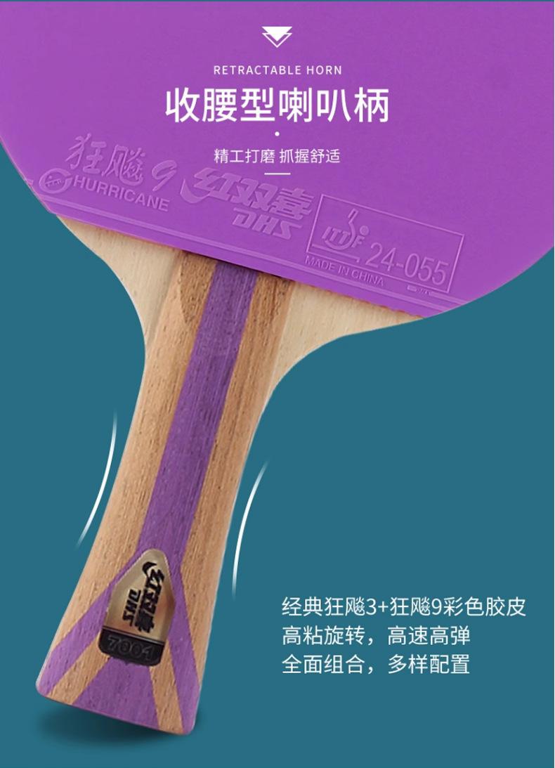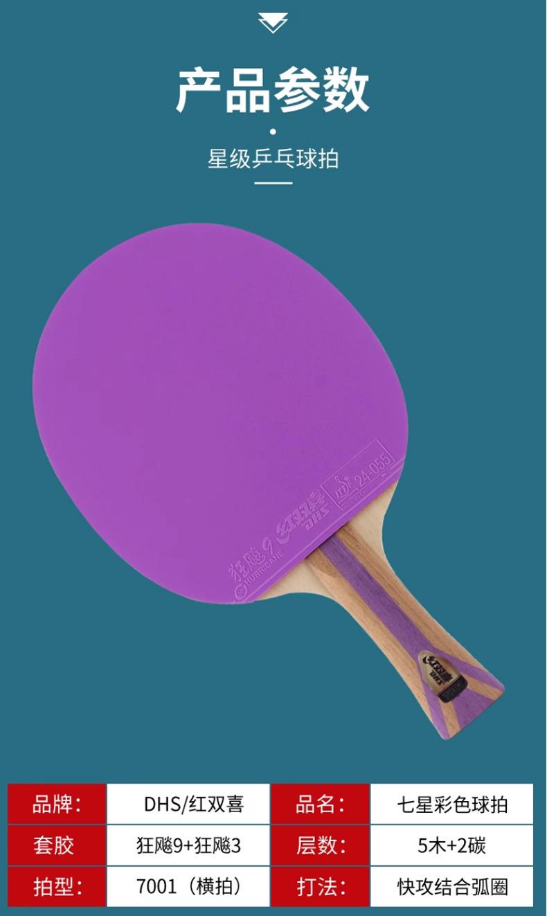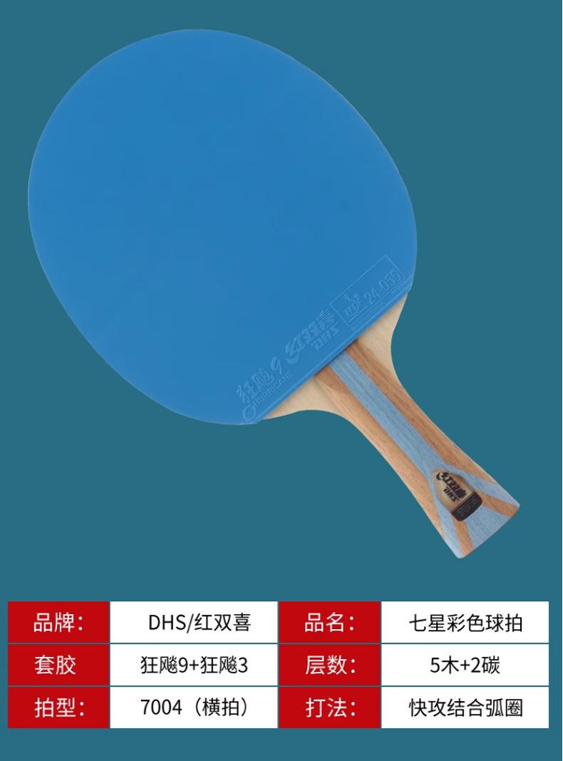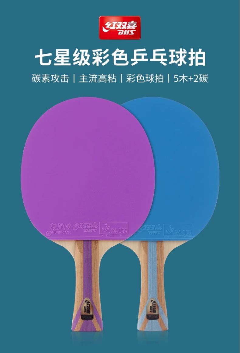 Raquetas de tenis de mesa Red Double Happiness, raquetas rectas profesionales de siete estrellas, raquetas horizontales y raquetas Crazy Bats de goma de color de siete estrellas, raquetas individuales para entrenamiento de competición de 6 jugadores.
