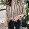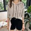 Compra Comercio Exterior Talla Grande Camisa Rayada Tops de Mujer 2025 Primavera y Verano Nuevo Estilo Hong Kong Suelta Manga Tres Cuartos Camisa Base al por mayor en Joom.pro
