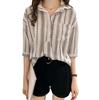 Comercio Exterior Talla Grande Camisa Rayada Tops de Mujer 2025 Primavera y Verano Nuevo Estilo Hong Kong Suelta Manga Tres Cuartos Camisa Base
