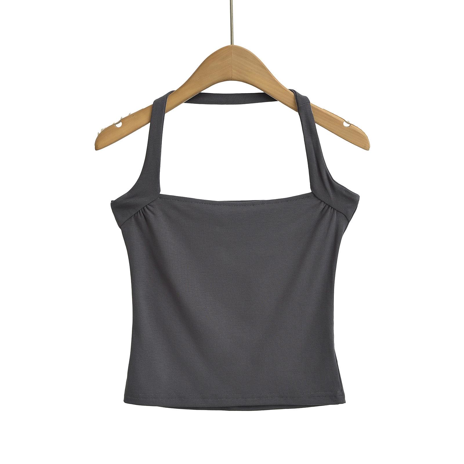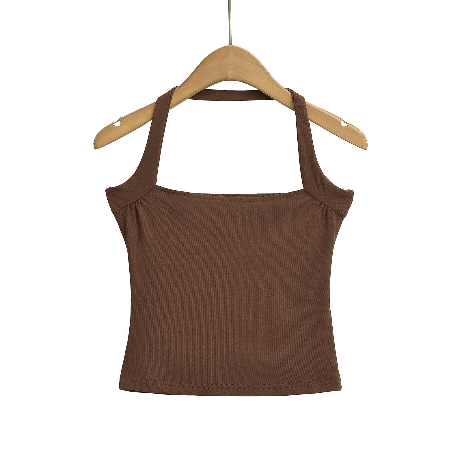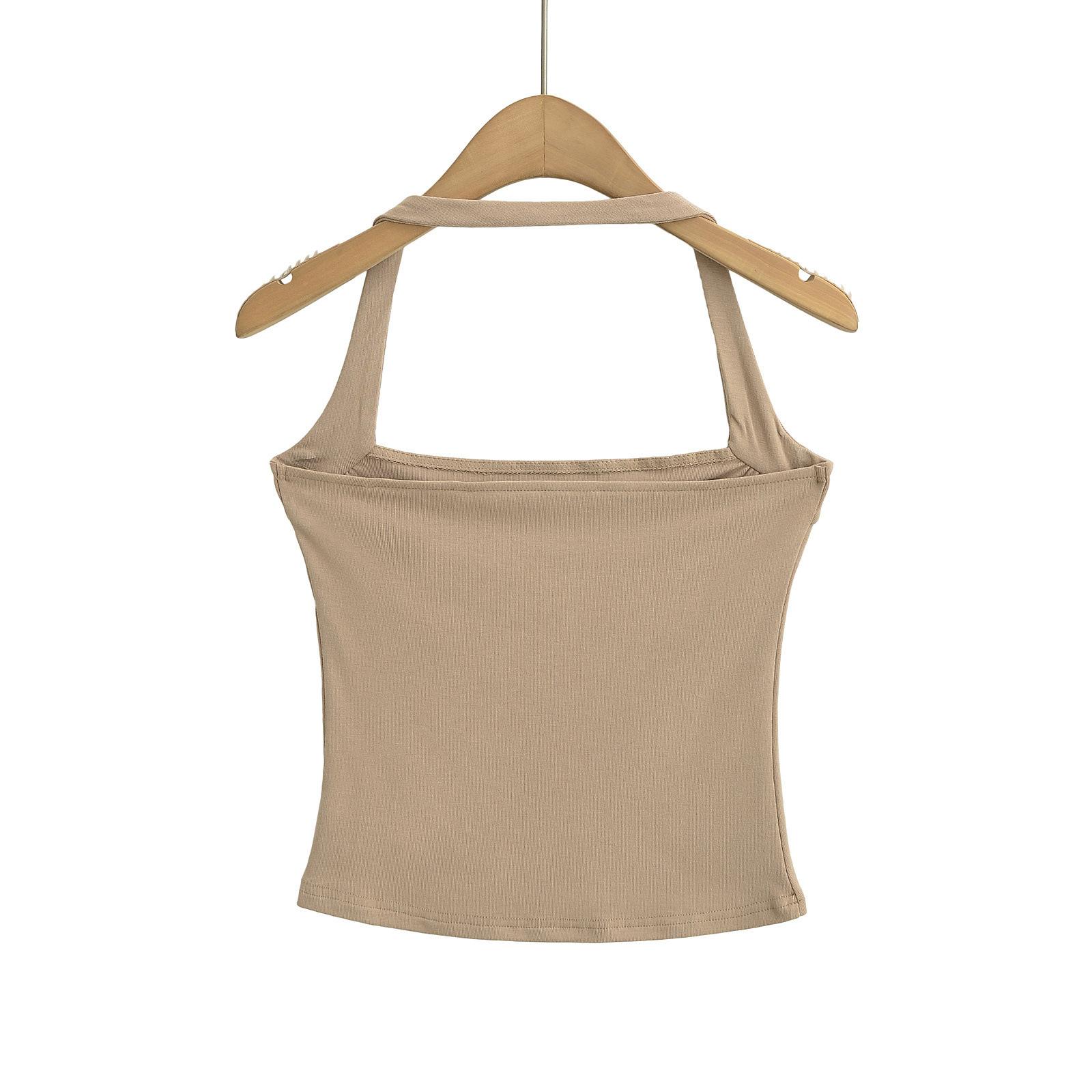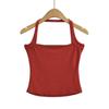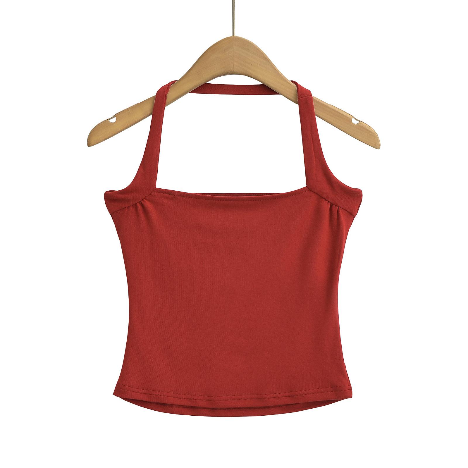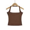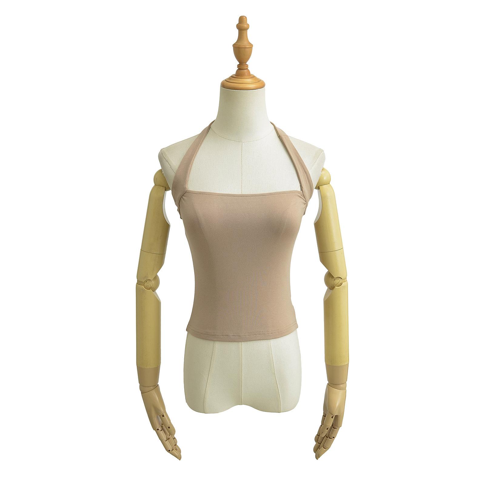 Camisola sexy con cuello halter para mujer, corte entallado, hombros descubiertos, S20658