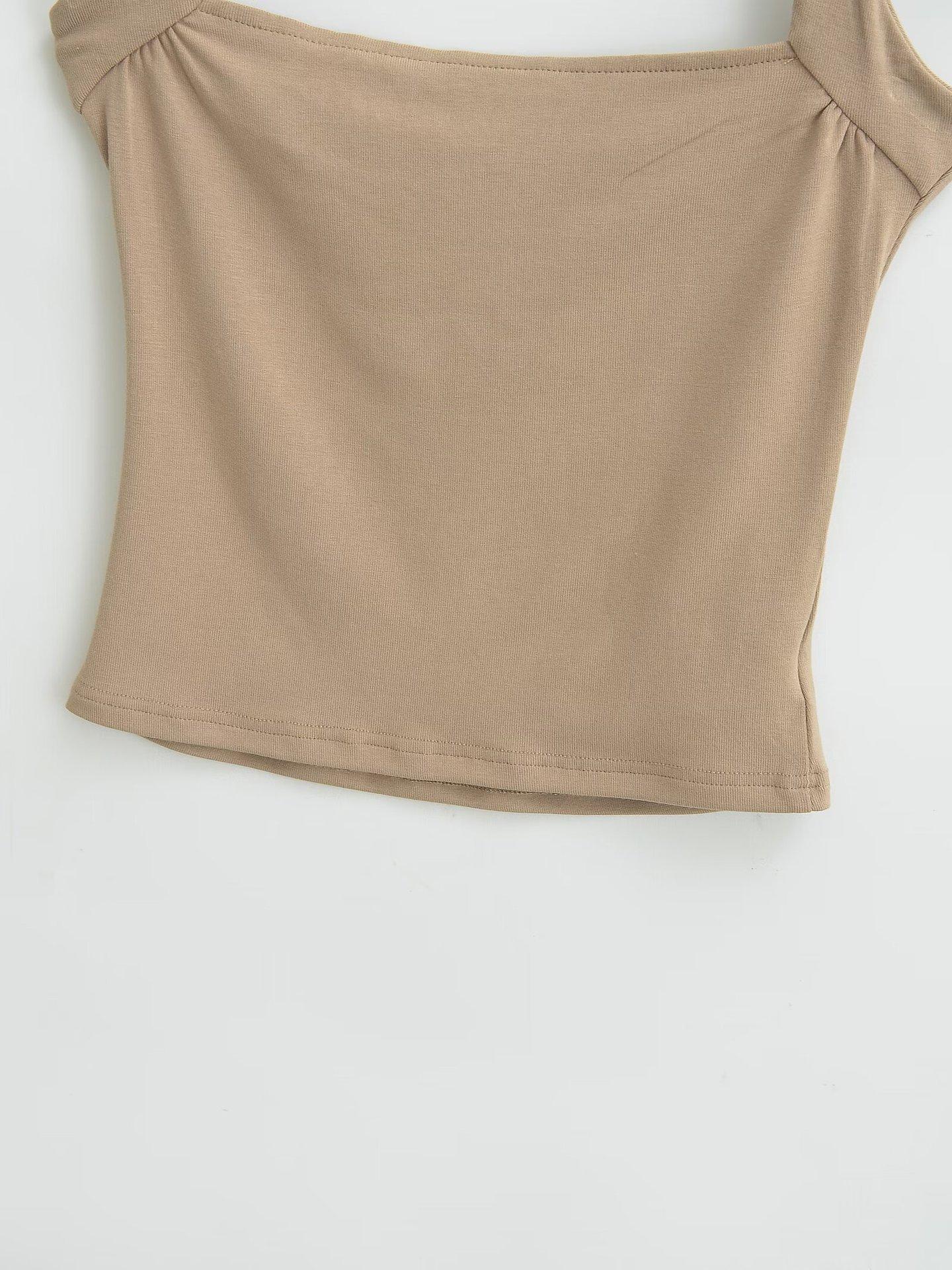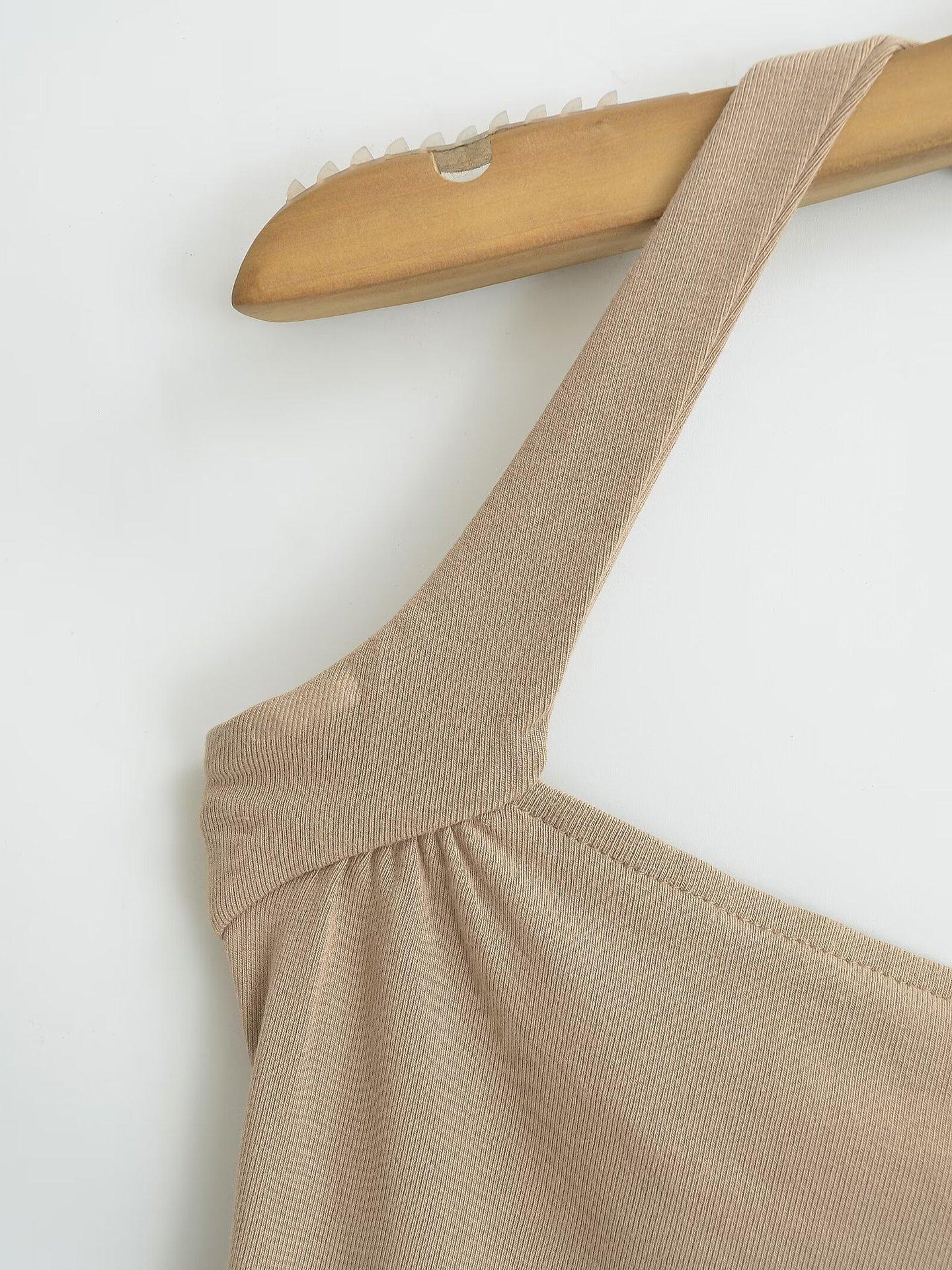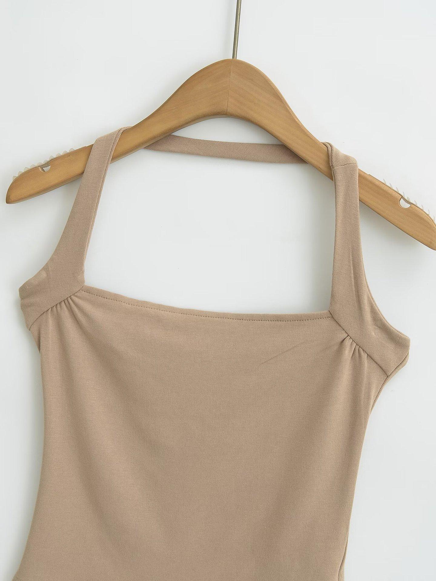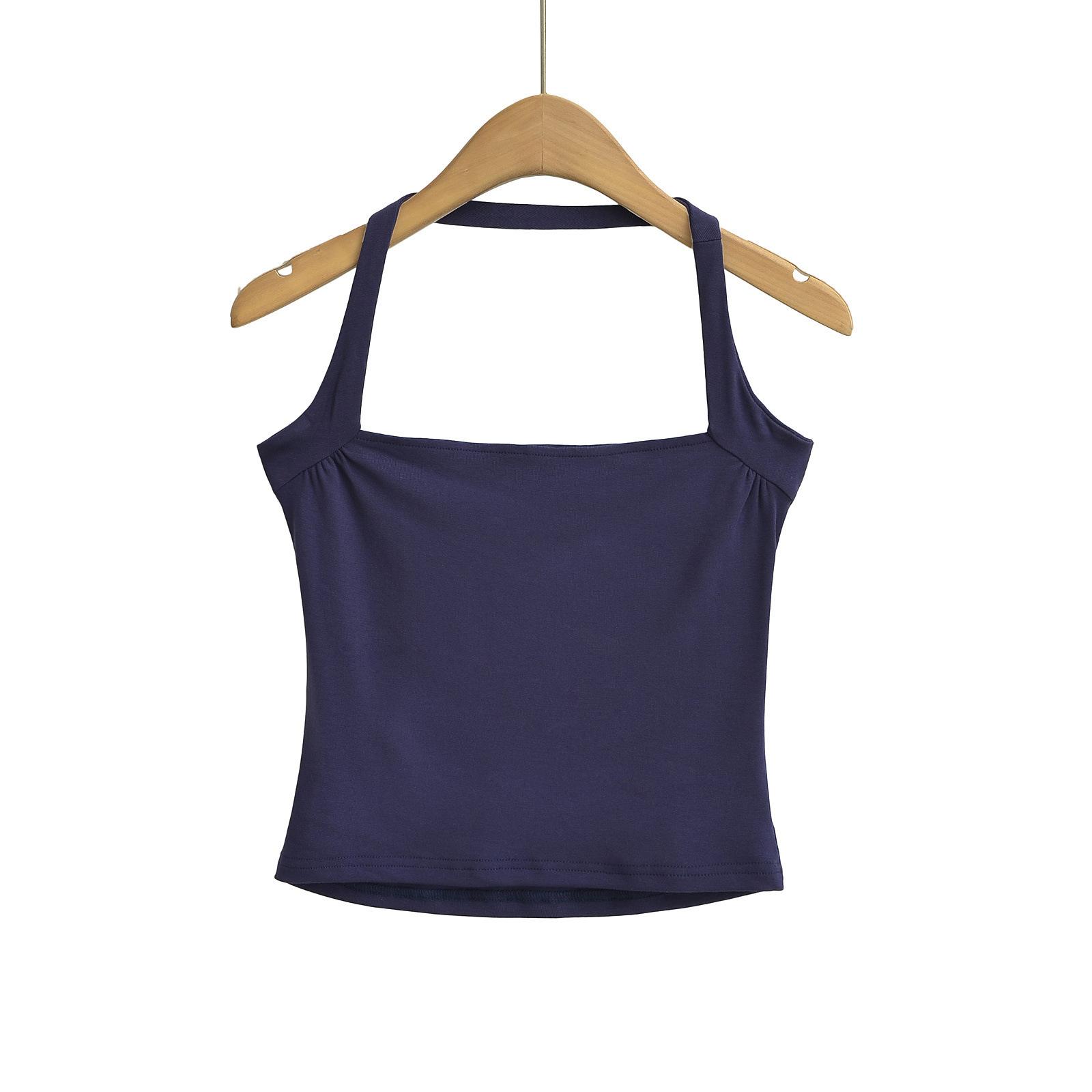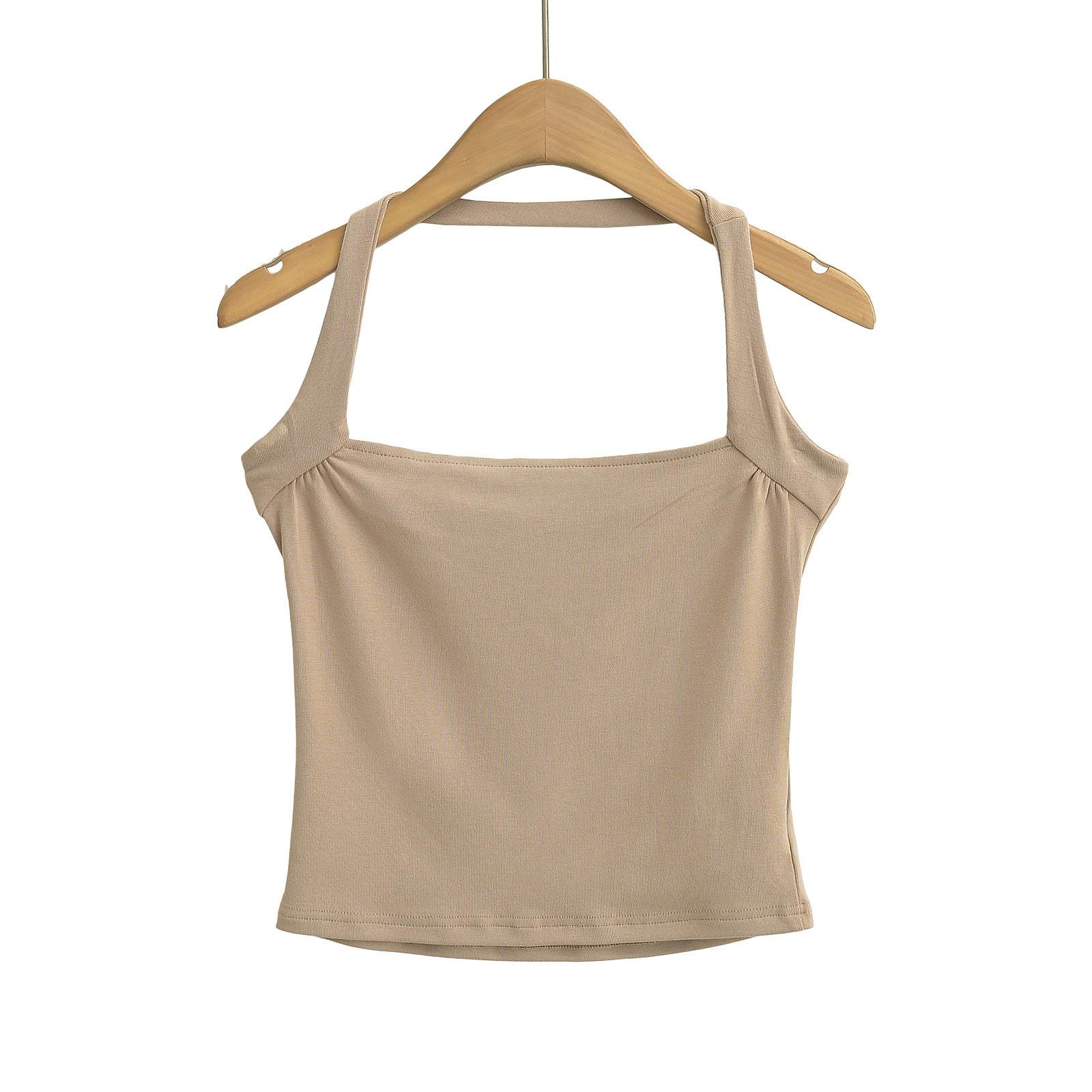 Camisola sexy con cuello halter para mujer, corte entallado, hombros descubiertos, S20658
