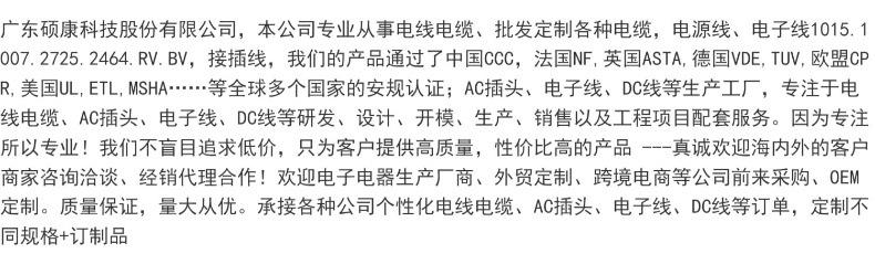 Cable de alimentación europeo estándar de dos clavijas Cable de conexión de alimentación de dos núcleos con enchufe Cable de alimentación cableado Ul2464