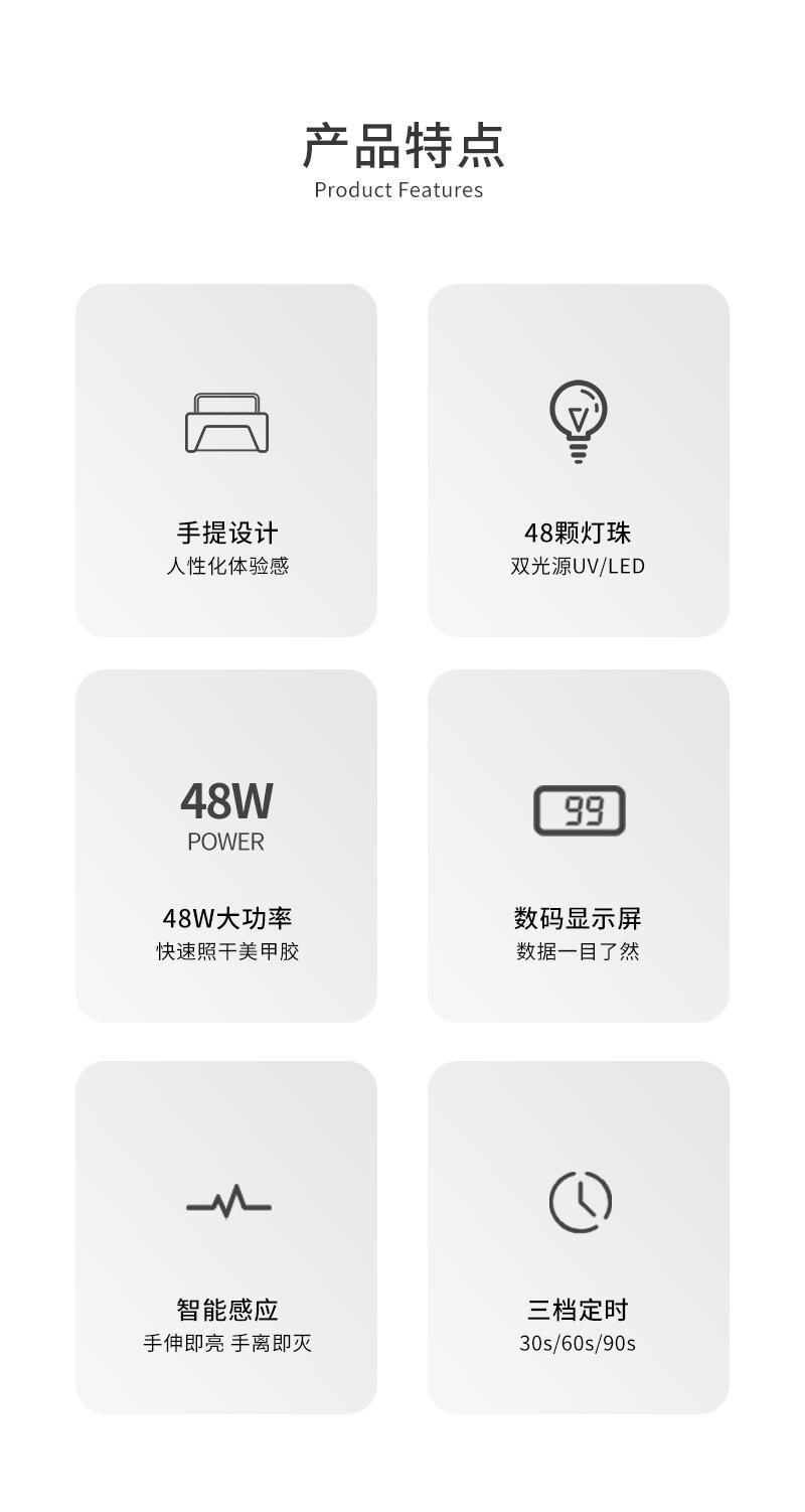 Lámpara de uñas portátil transfronteriza, lámpara de fototerapia UV, lámpara de horneado de uñas enchufable, máquina de horneado de uñas de alta potencia de 48 W