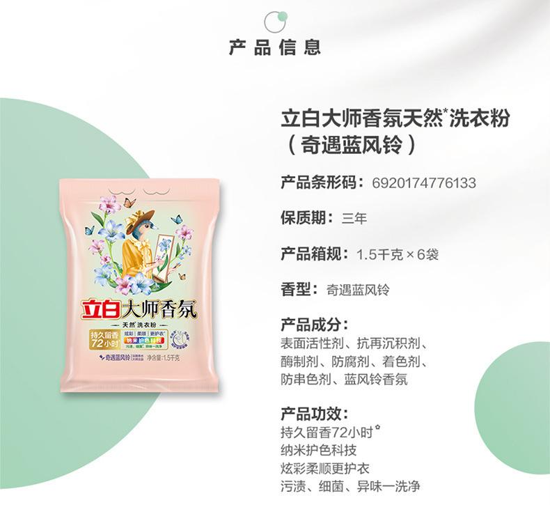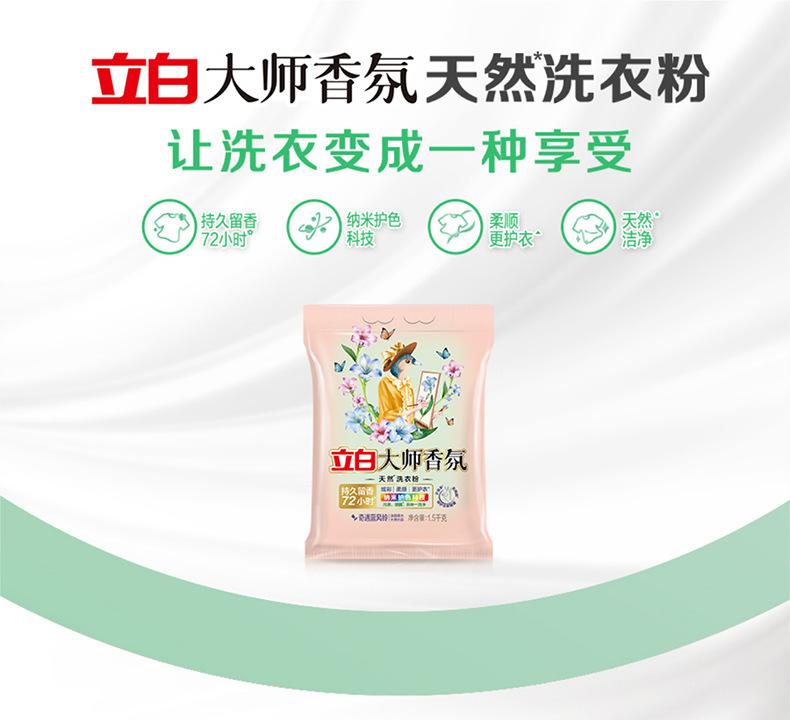 Detergente en polvo Li Bai, fragancia maestra, campana de viento azul, 1,5 kg, detergente en polvo con protección del color, artículos genuinos para el hogar, venta al por mayor, cantidad, lote