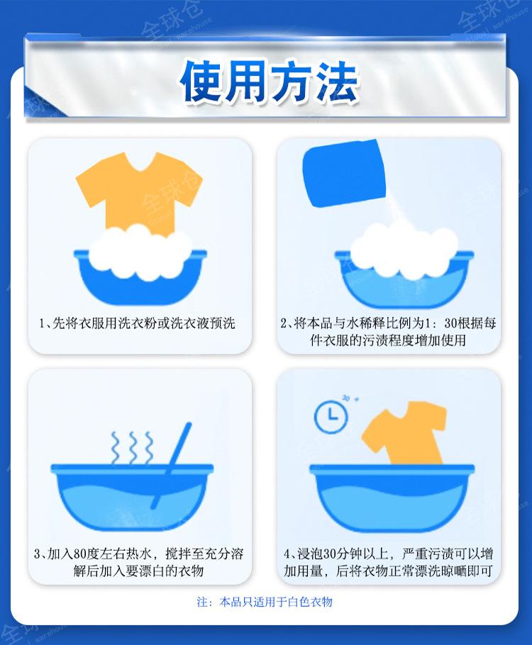 Almacén global blanco ropa reducción partículas lejía para quitar manchas y amarilleo blanqueador ropa lavada blanco artefacto amarillo también