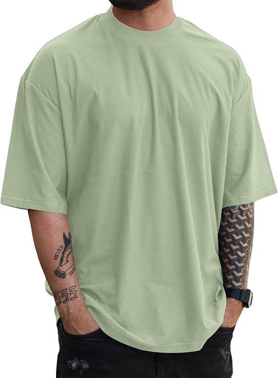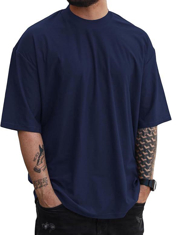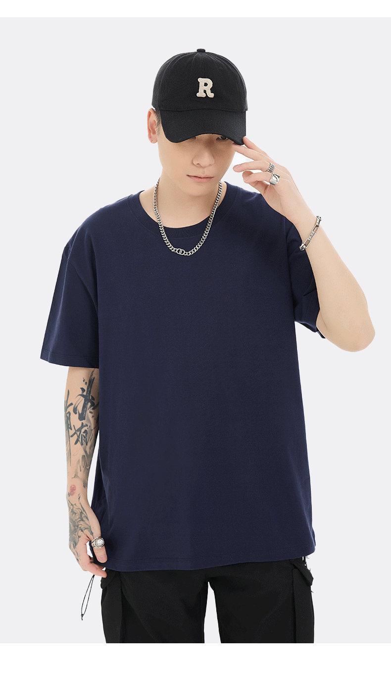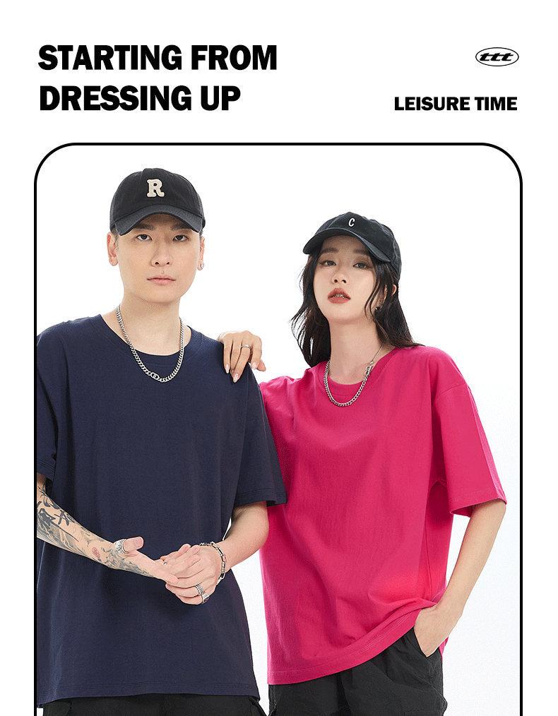 Camiseta de manga corta holgada de verano para hombre y mujer, de algodón, con cuello redondo, combinable con todo, de color liso y mangas cortas.