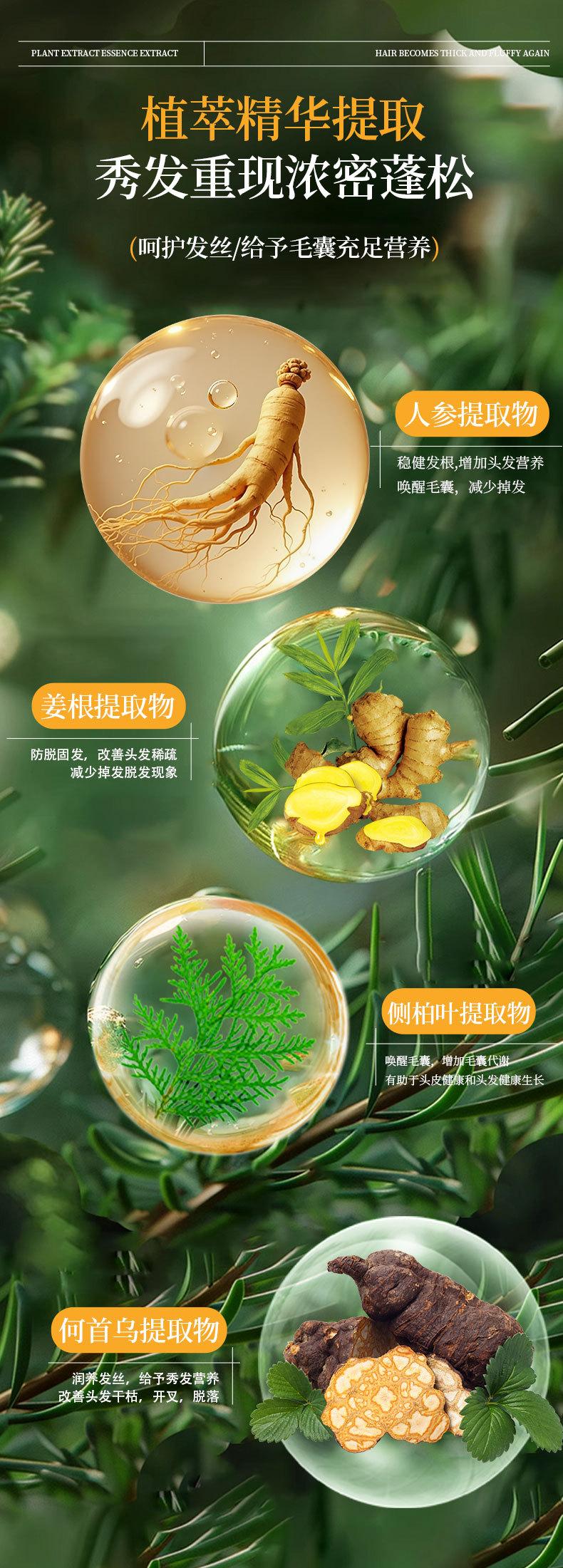 Esencia Popular Qianfei Anti-Caída del Cabello Planta Herbal Jengibre y Ginseng Anti-Caída del Cabello Nutritiva Fortalecedora del Cabello Spray