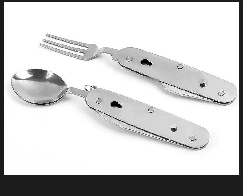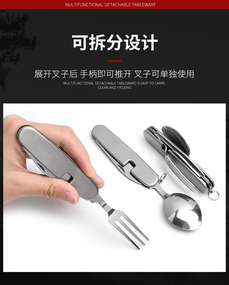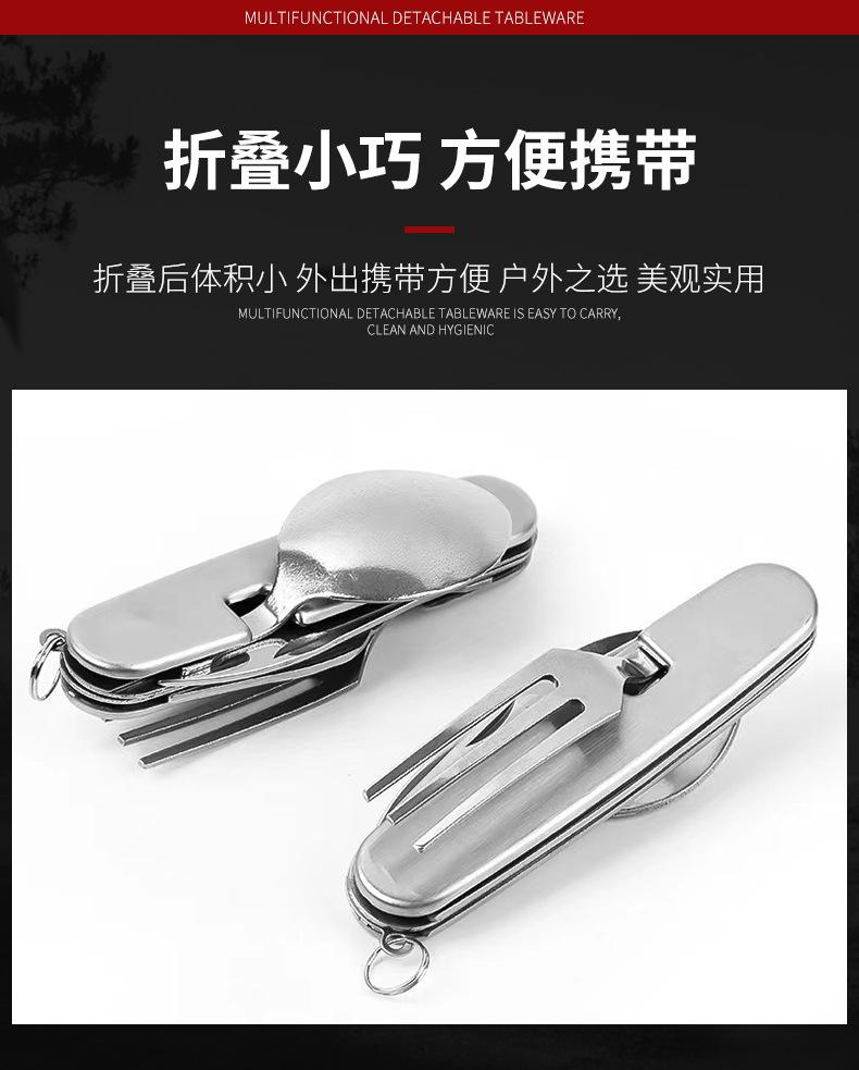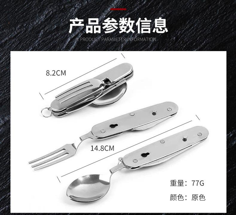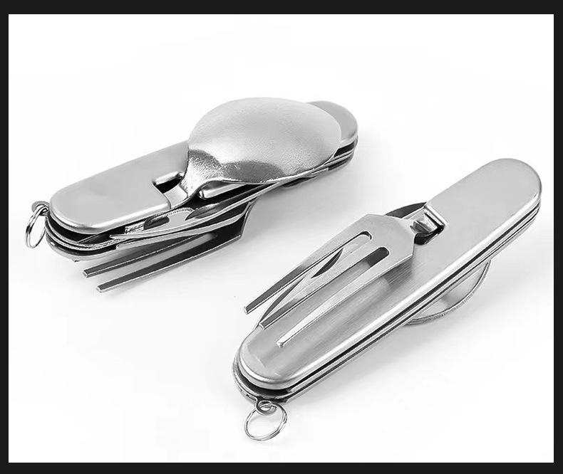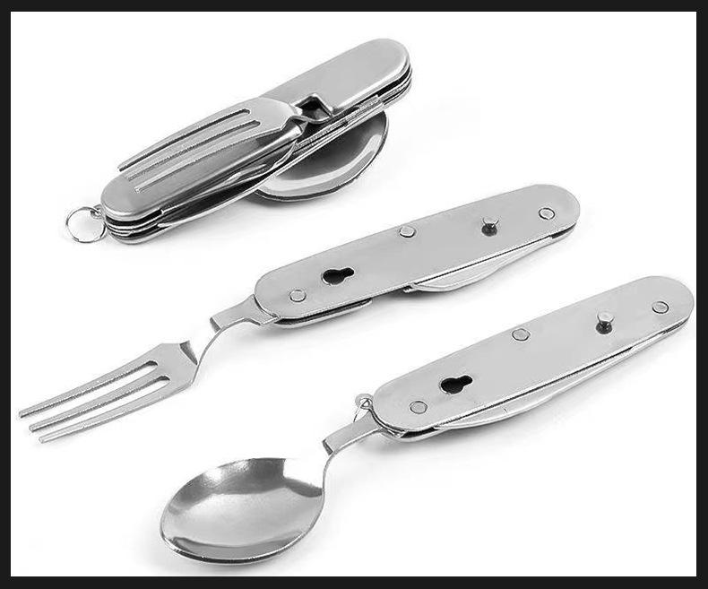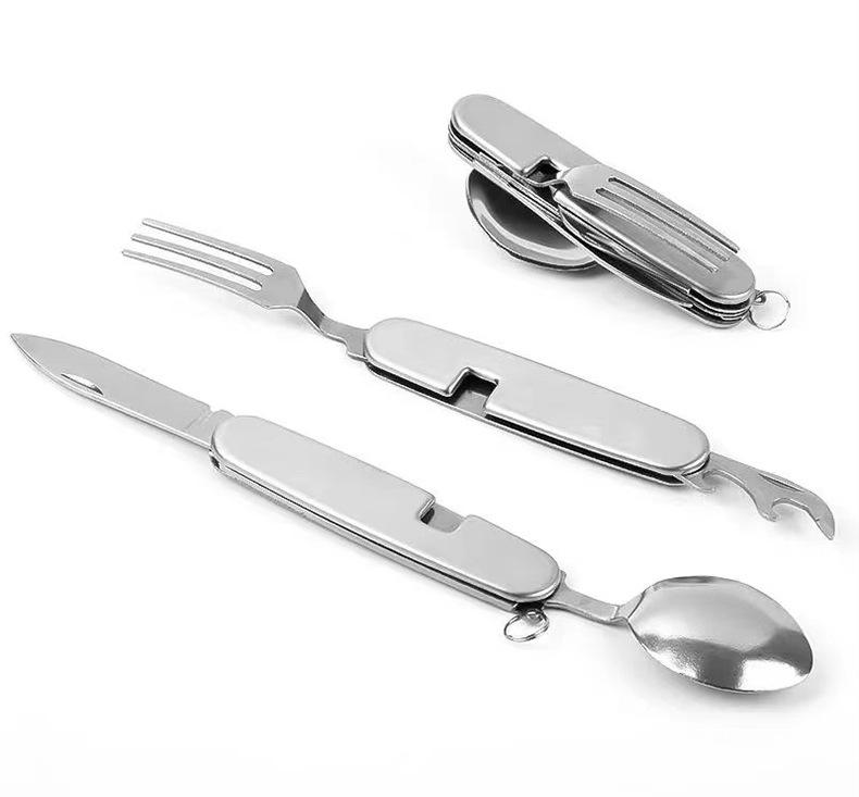 Cuchillo, tenedor y cuchara de acero inoxidable plegable portátil de una sola pieza, vajilla multiusos para acampar al aire libre, herramienta creativa para picnic