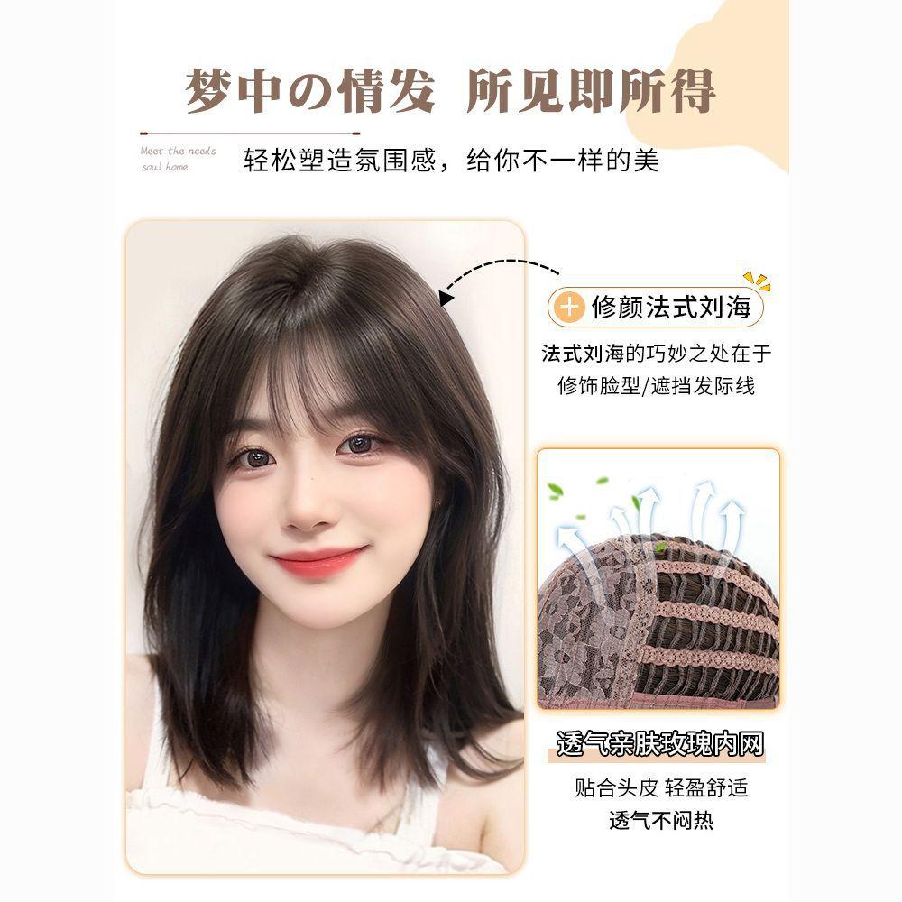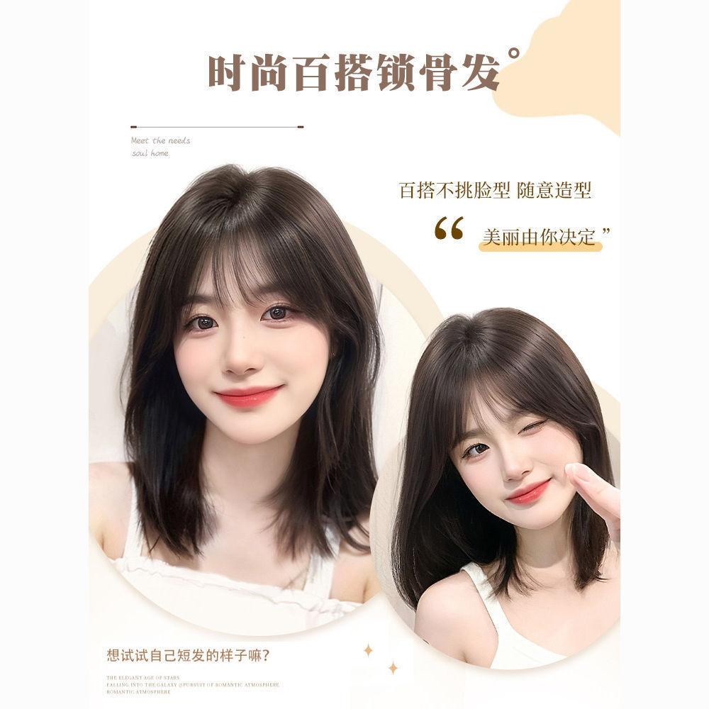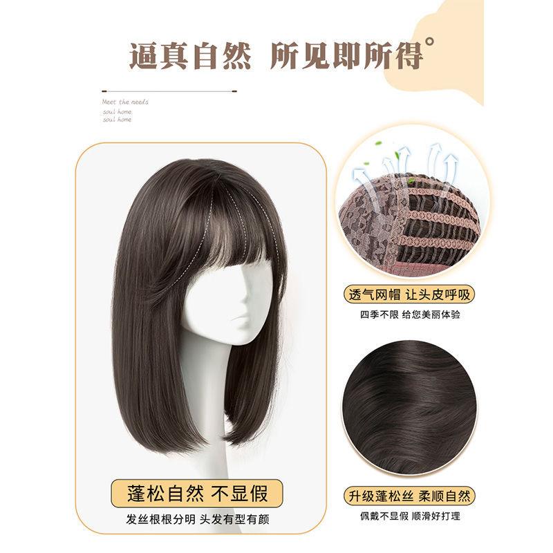Peluca de mujer de cabello corto y liso con cobertura total para la cabeza, natural, antiedad, para clavícula, moderna, ligera, transpirable, que no deja marcas, con cobertura total.