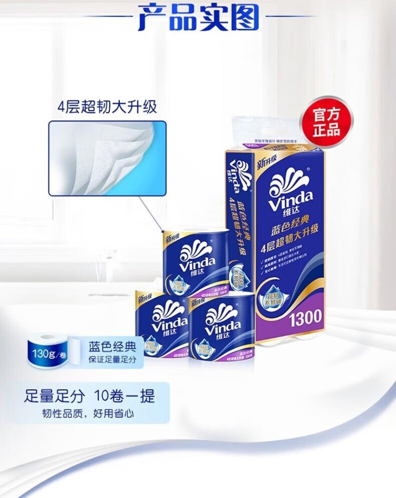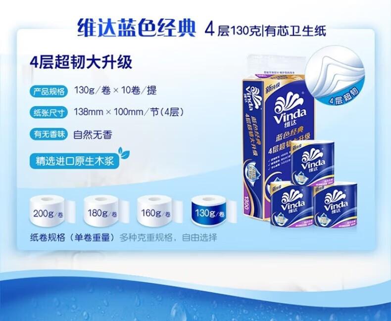 Papel higiénico Vader Super Tough de 4 capas, 130 g, 10 rollos, papel higiénico clásico para el hogar, económico