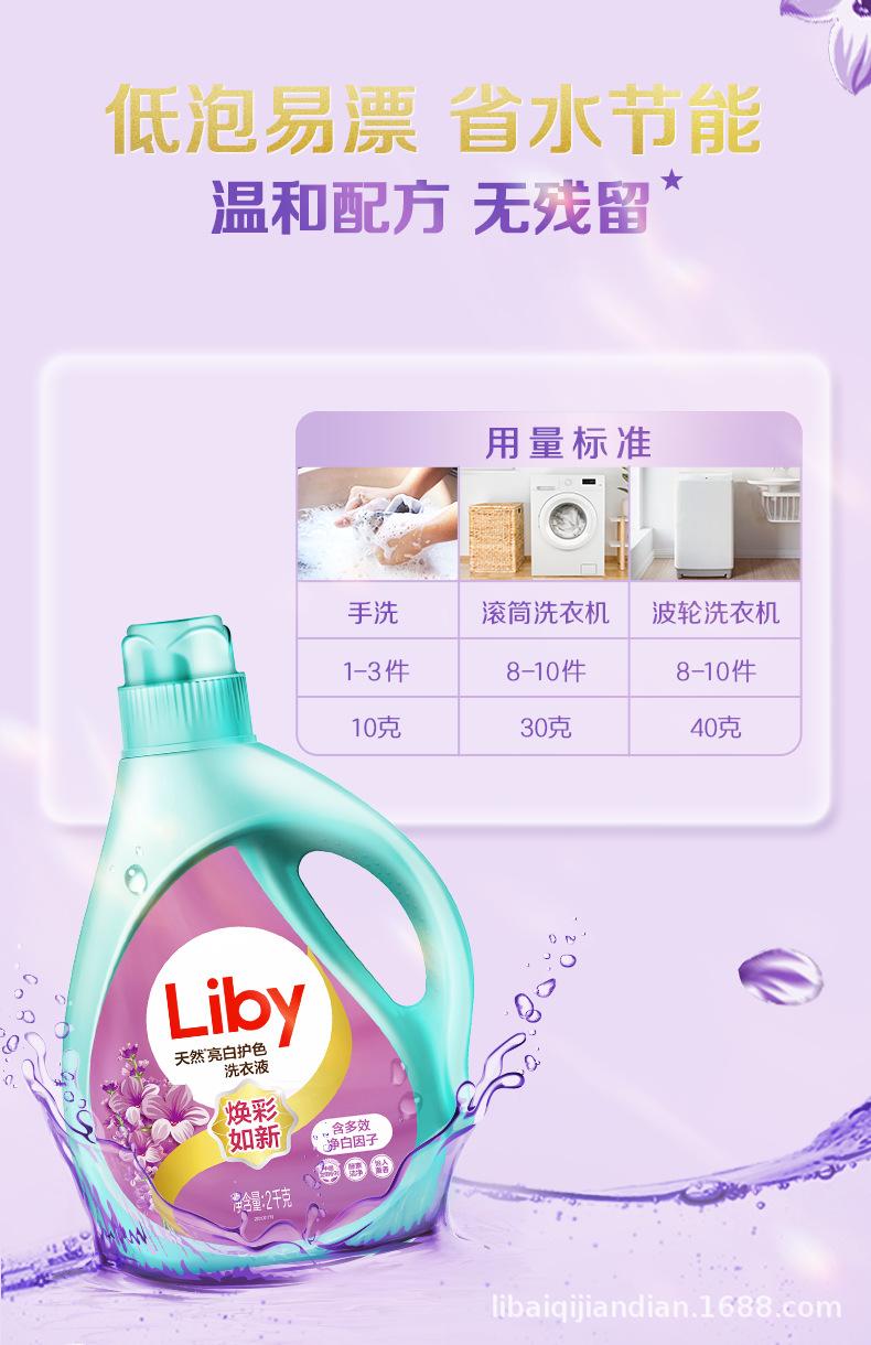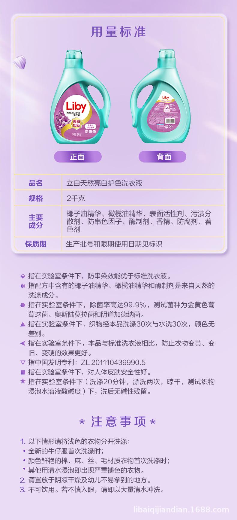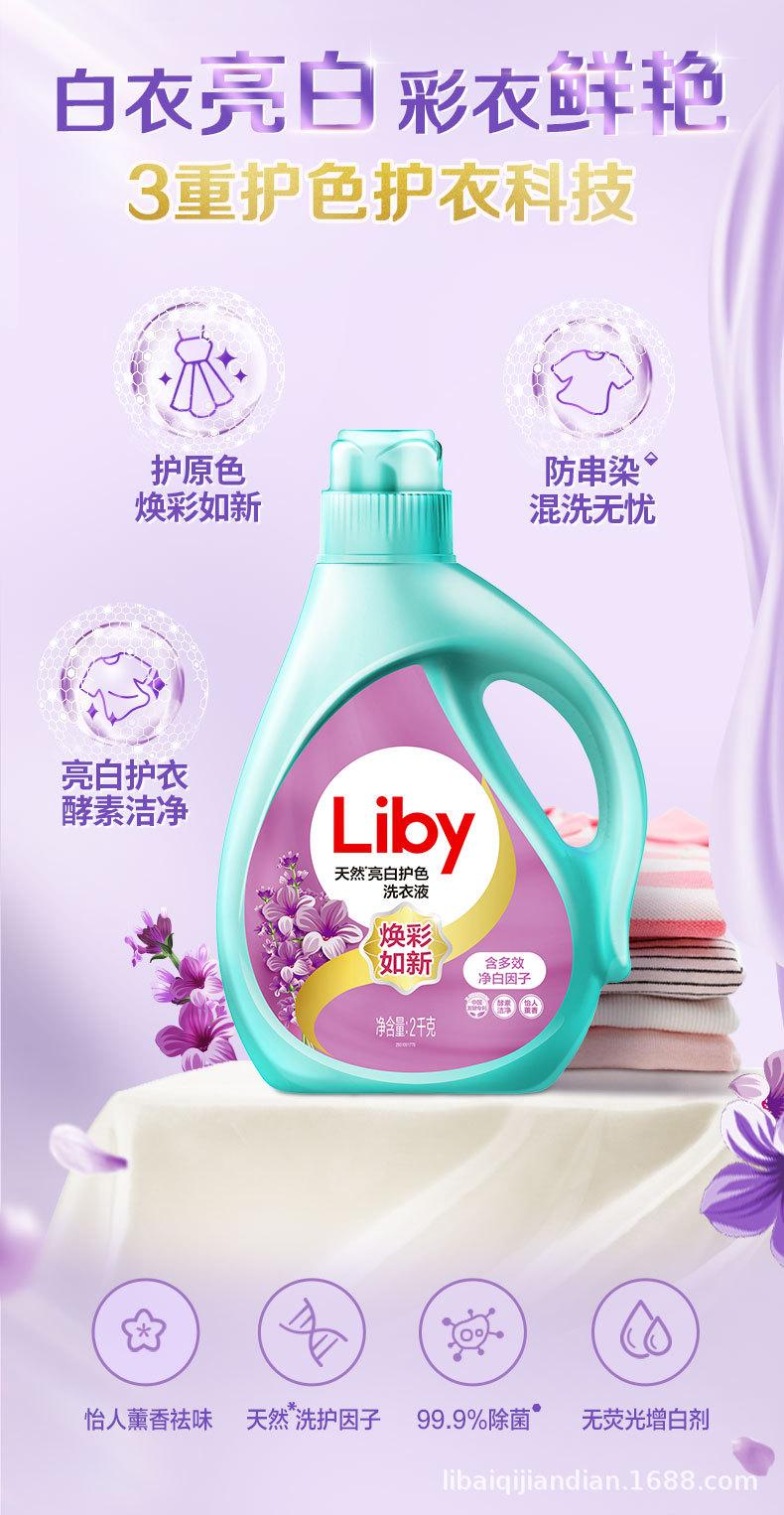 Tienda Insignia Guangzhou Libai Detergente Líquido Blanco Brillante Protección del Color Detergente Líquido Embotellado 2kg Detergente Líquido Antitransferencia de Color