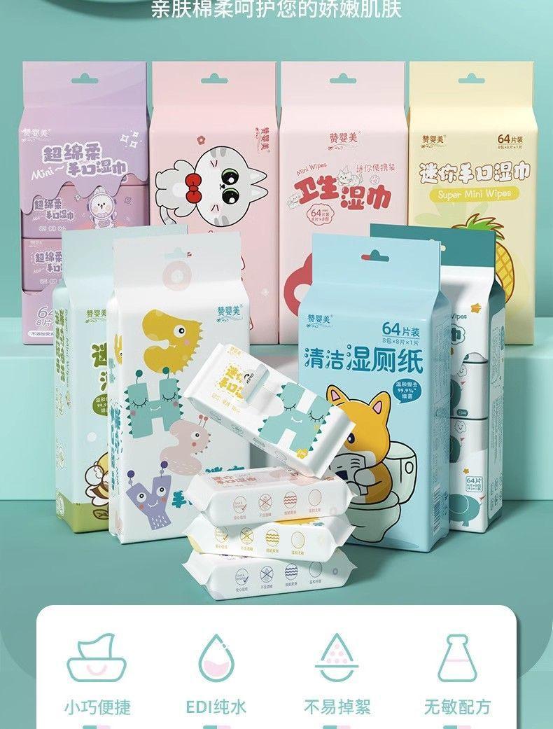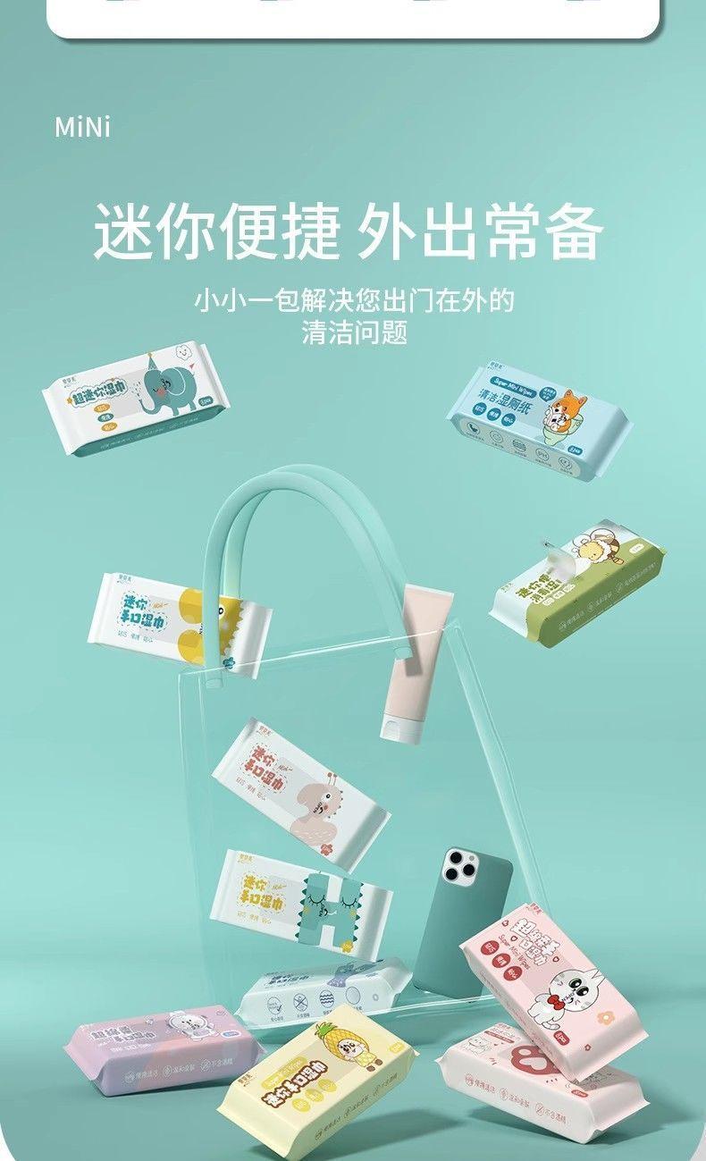 Una generación de toallitas húmedas portátiles súper mini para el cabello, toallitas húmedas para estudiantes femeninas, toallitas húmedas para bebés, bolsa pequeña para bebés disponible