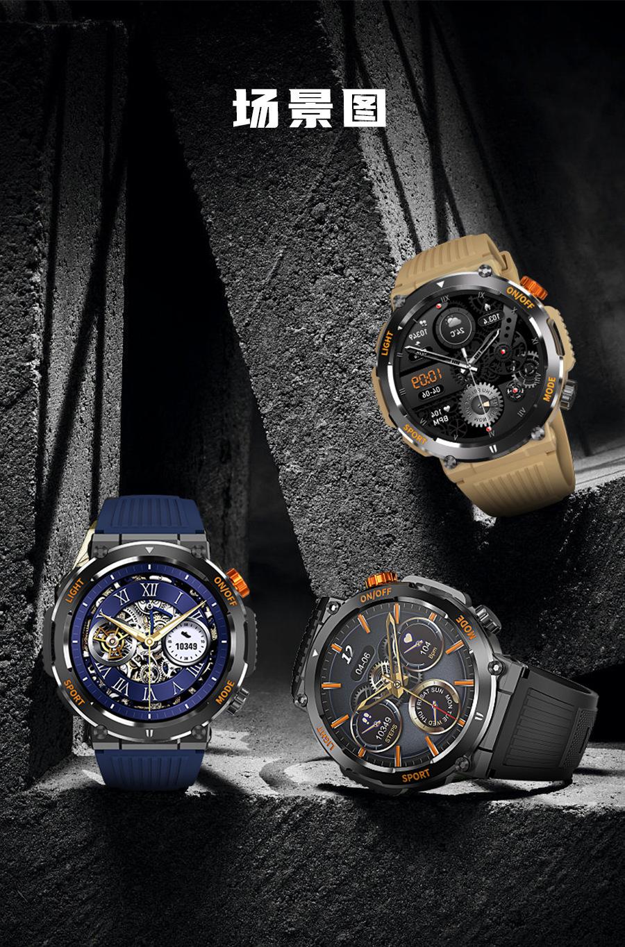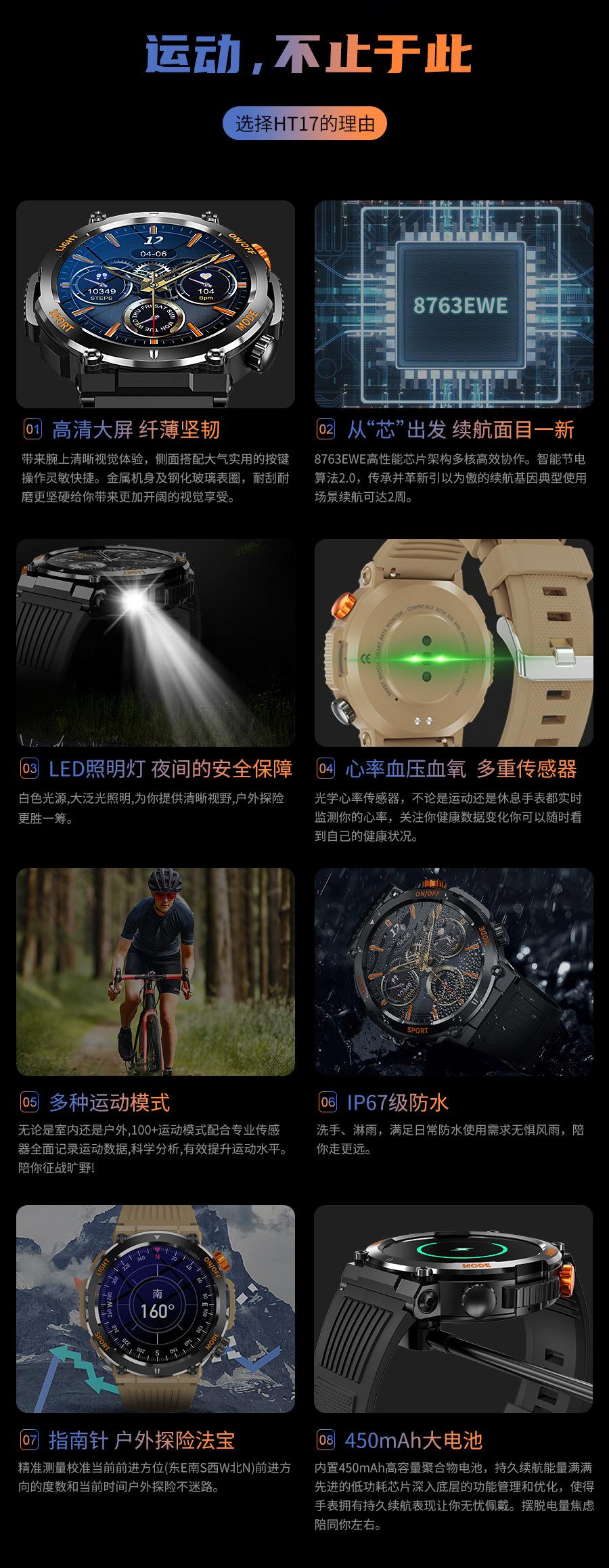 Nuevo reloj inteligente para exteriores HT17 luz LED brújula llamada Bluetooth resistente al agua deportes 1.46 pantalla grande pulsera