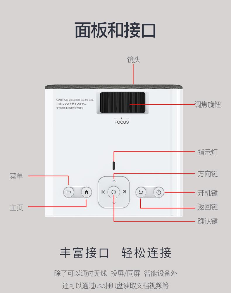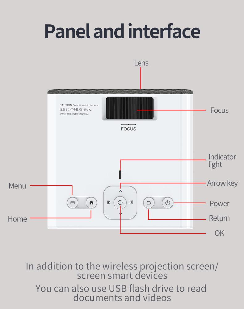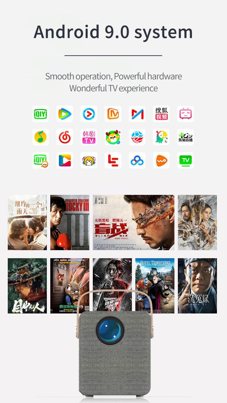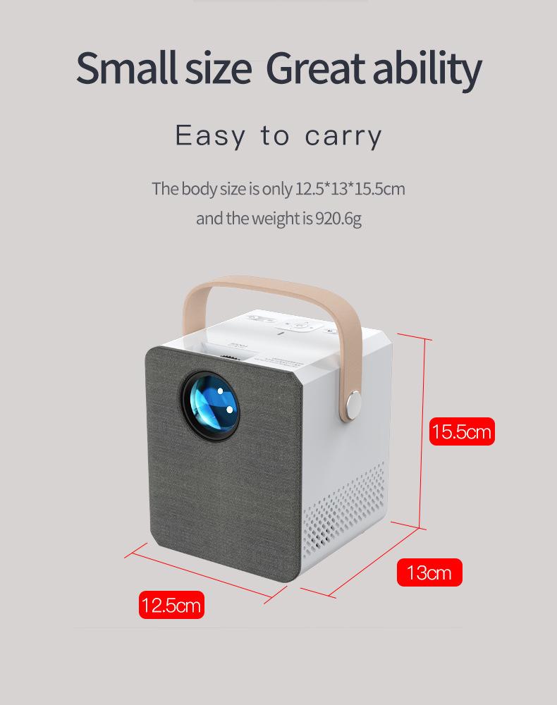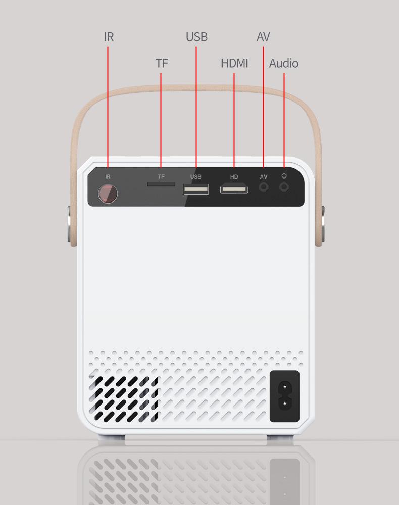 Android 9.0 Tecnología de proyección: LCD de 3.5" Brillo (ANSI): 300 lúmenes ANSI Resolución: 1024*600P Relación de contraste: 1000:1 Conector: HDMI*1/USB*1/TF/AV/Audio (3,5 mm) Vida útil de la lámpara (horas): 30,000 horas Relación de aspecto: 4:3/16:9 Corrección trapezoidal: Corrección trapezoidal, V +/-15° Color: blanco Distancia de proyección (m): 1~4m Idioma OSD: Inglés, Francés, Alemán, Español, Italiano, Portugués, Ruso, Polaco, Árabe, Chino, Turco, Japonés, Tailandés, Vietnamita Neerlandés, Húngaro, Checo, Rumano, Griego, Finlandés, Sueco, Noruego, Danés... Tamaño de pantalla de proyección (pulgadas): 36-150 Voltaje de entrada (V): 110V-240V (+/-10%), 50-60Hz Consumo de energía (W): 55W Wi-Fi : SÍ Audio: altavoces de 2*3W (4 ohmios 3 vatios, terminales de 1.25, L130) Tamaño del dispositivo: 15.8x13x12 (cm) Peso en vacío: .9KG Tamaño de la caja de color: 23x16x16 (CM) Peso del set completo: 1.38kg Cantidad en la caja: 8 piezas Accesorios estándar: Manual de usuario, cable de alimentación, control remoto Áreas de aplicación: Cine en casa y entretenimiento, educación infantil