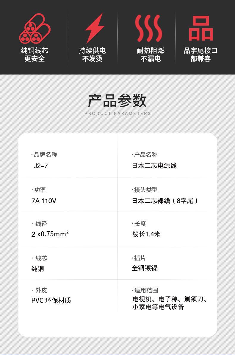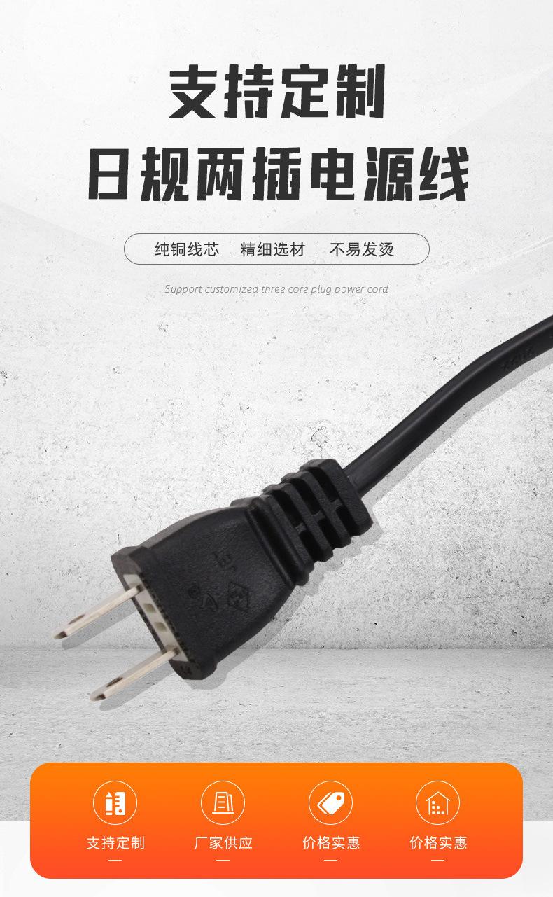 Cable de extensión japonés personalizado con certificación PSE, cable de alimentación estándar japonés de 2 núcleos, enchufe cruzado de tres orificios