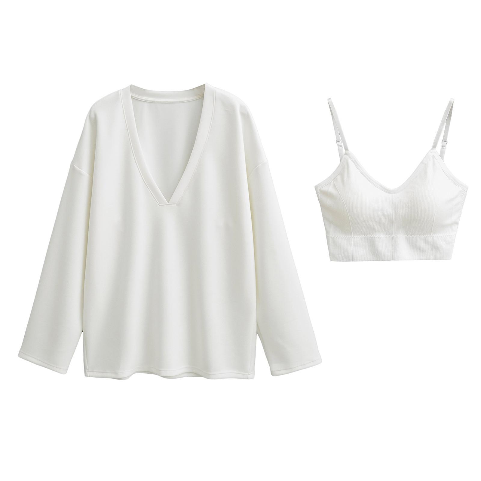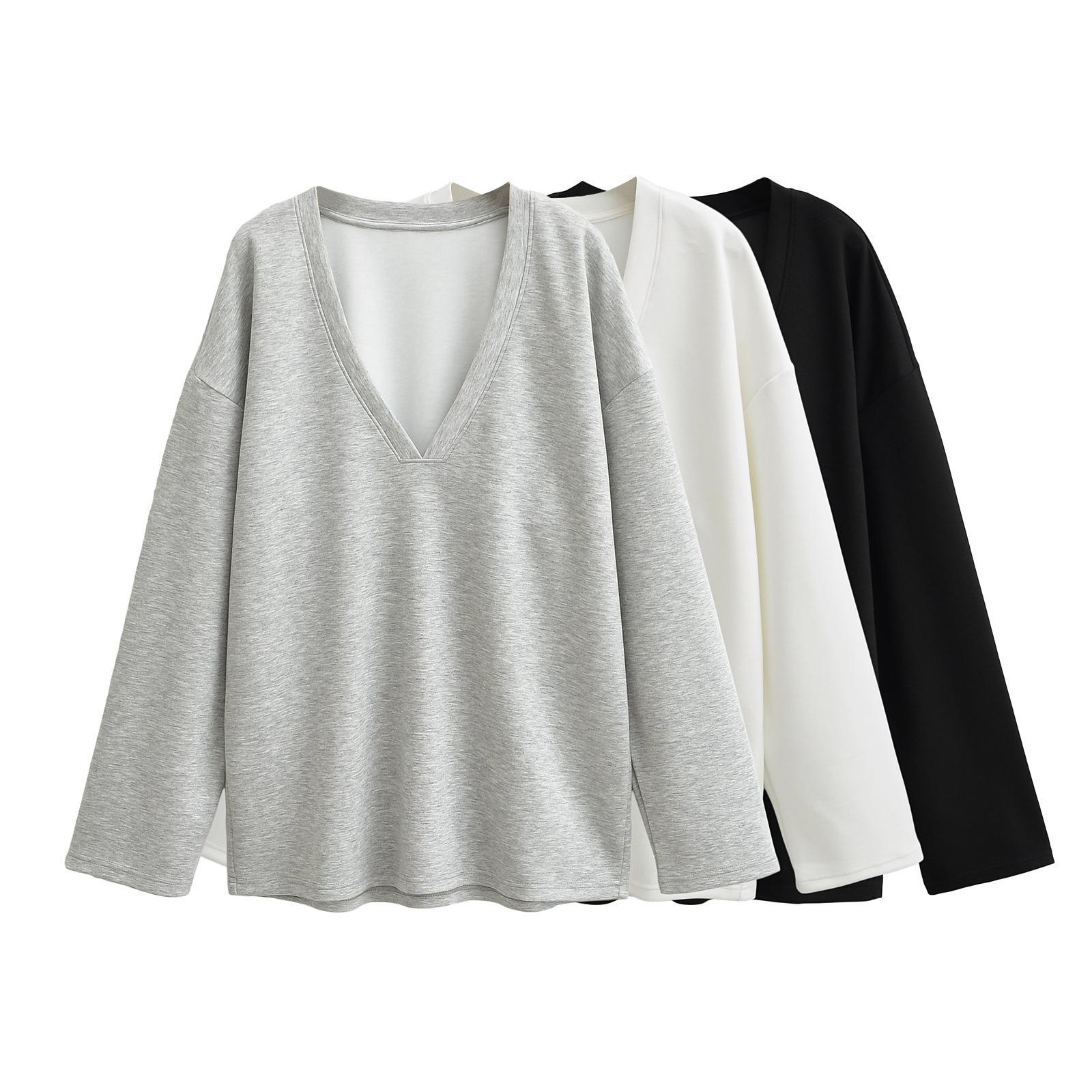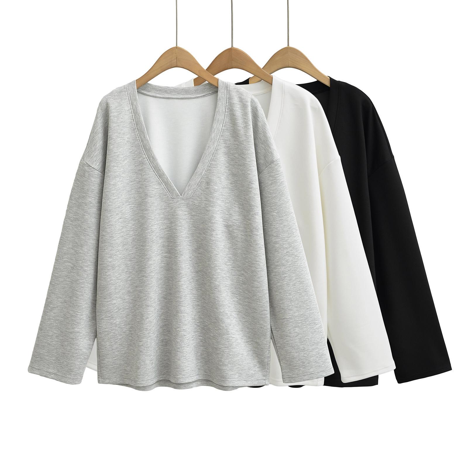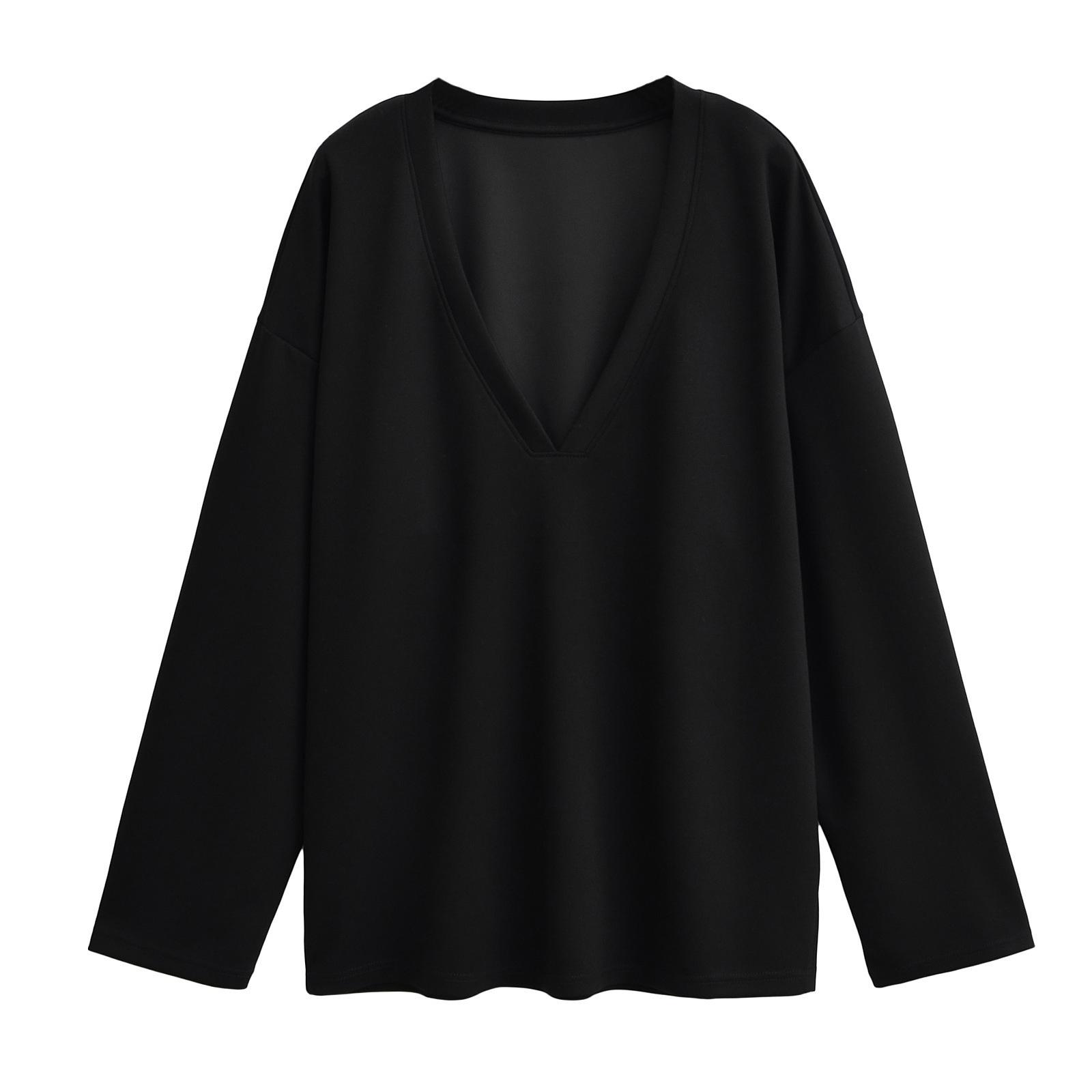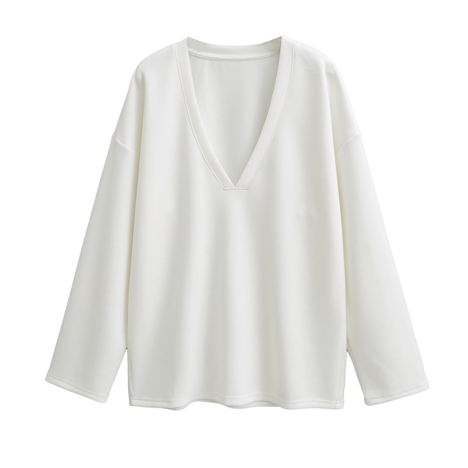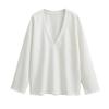 Blusa suelta de primavera y verano 2024, camiseta fina de manga larga con cuello en V y almohadilla para el pecho, espalda bonita