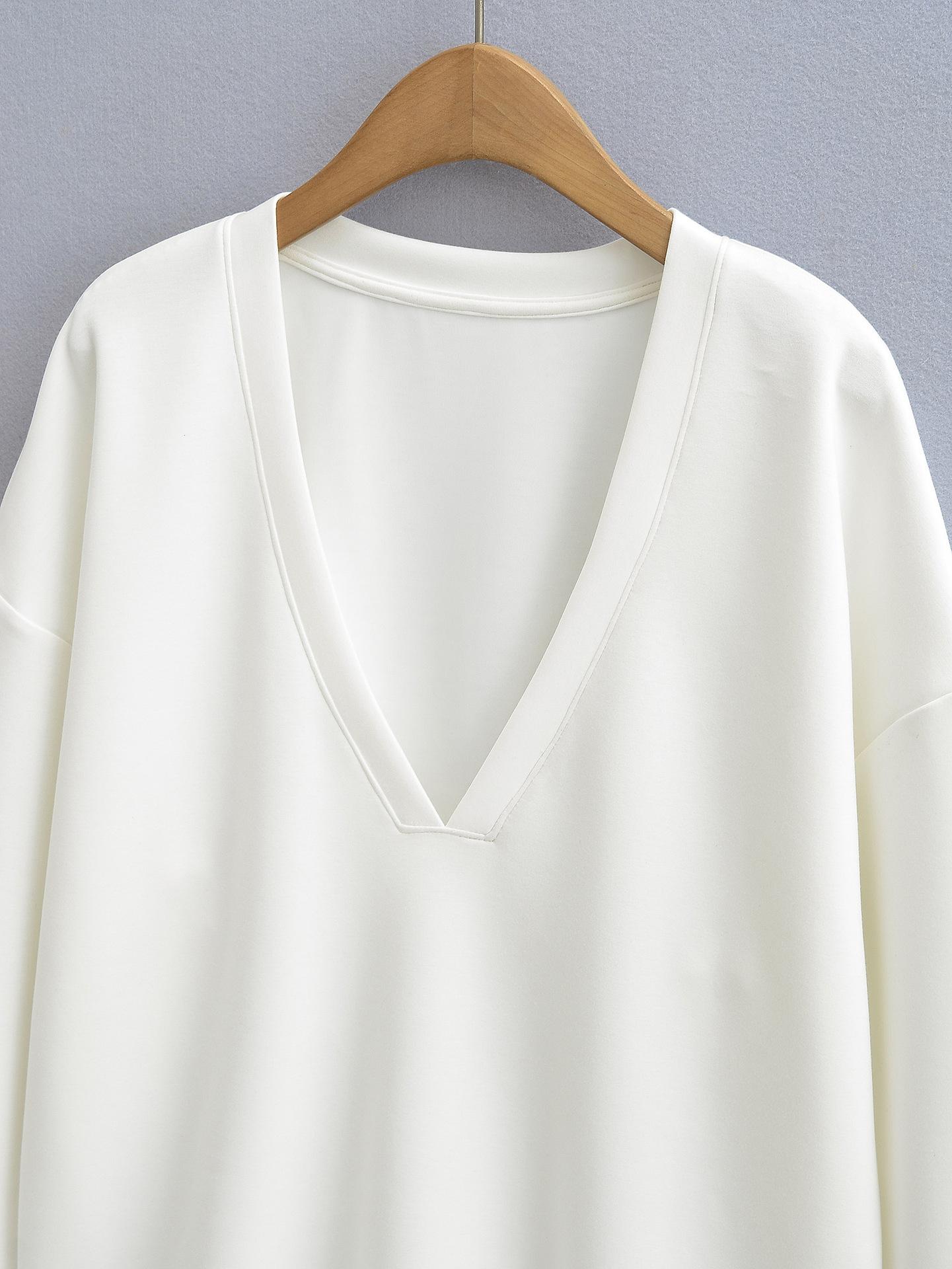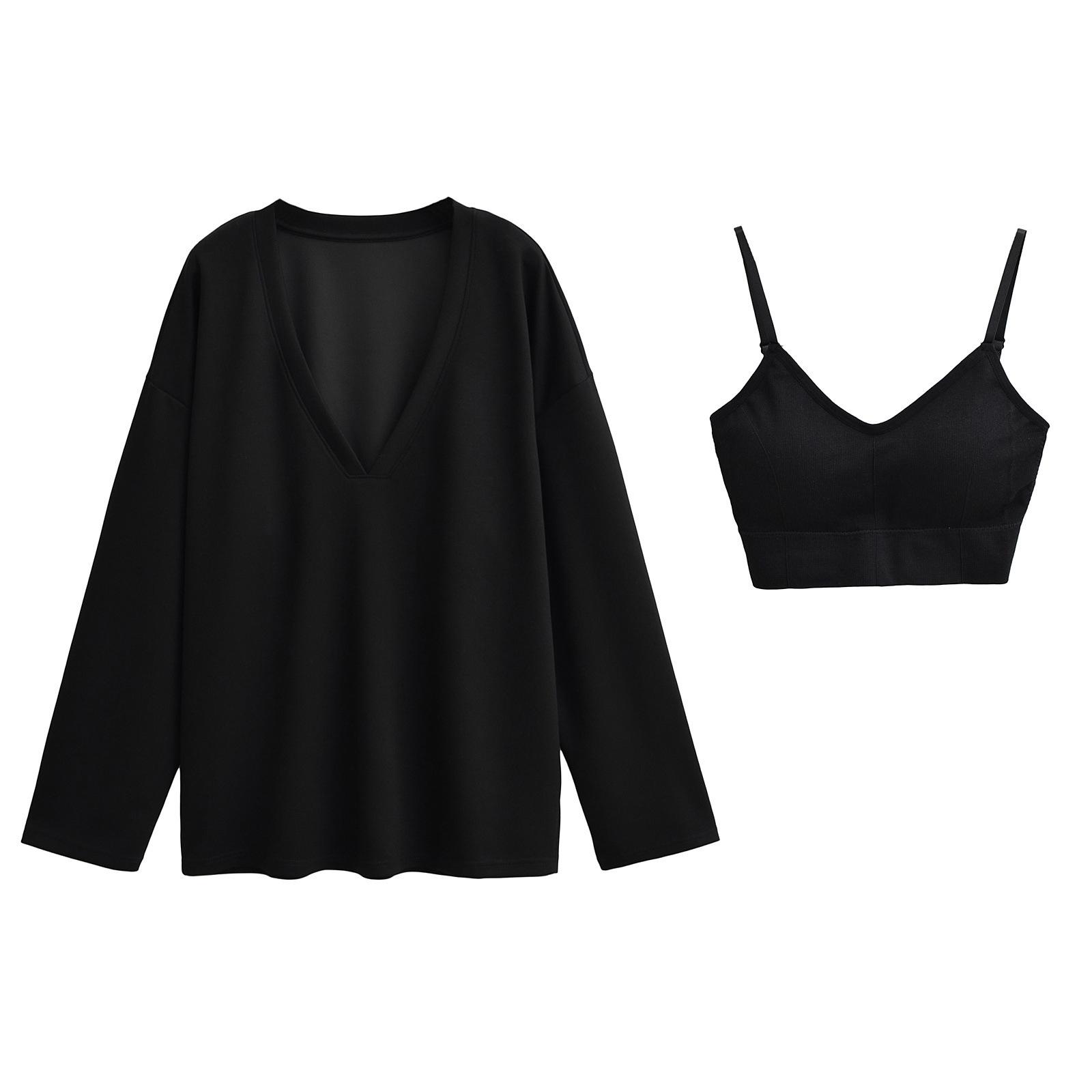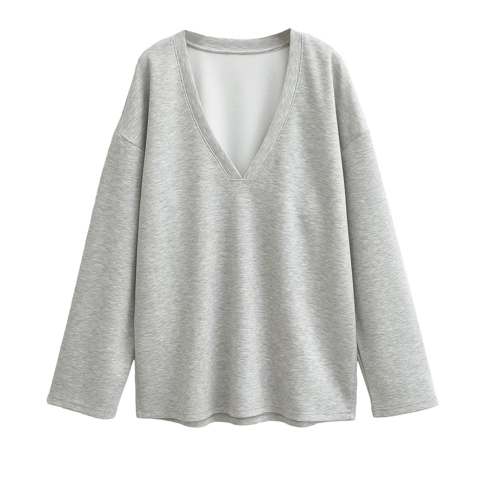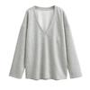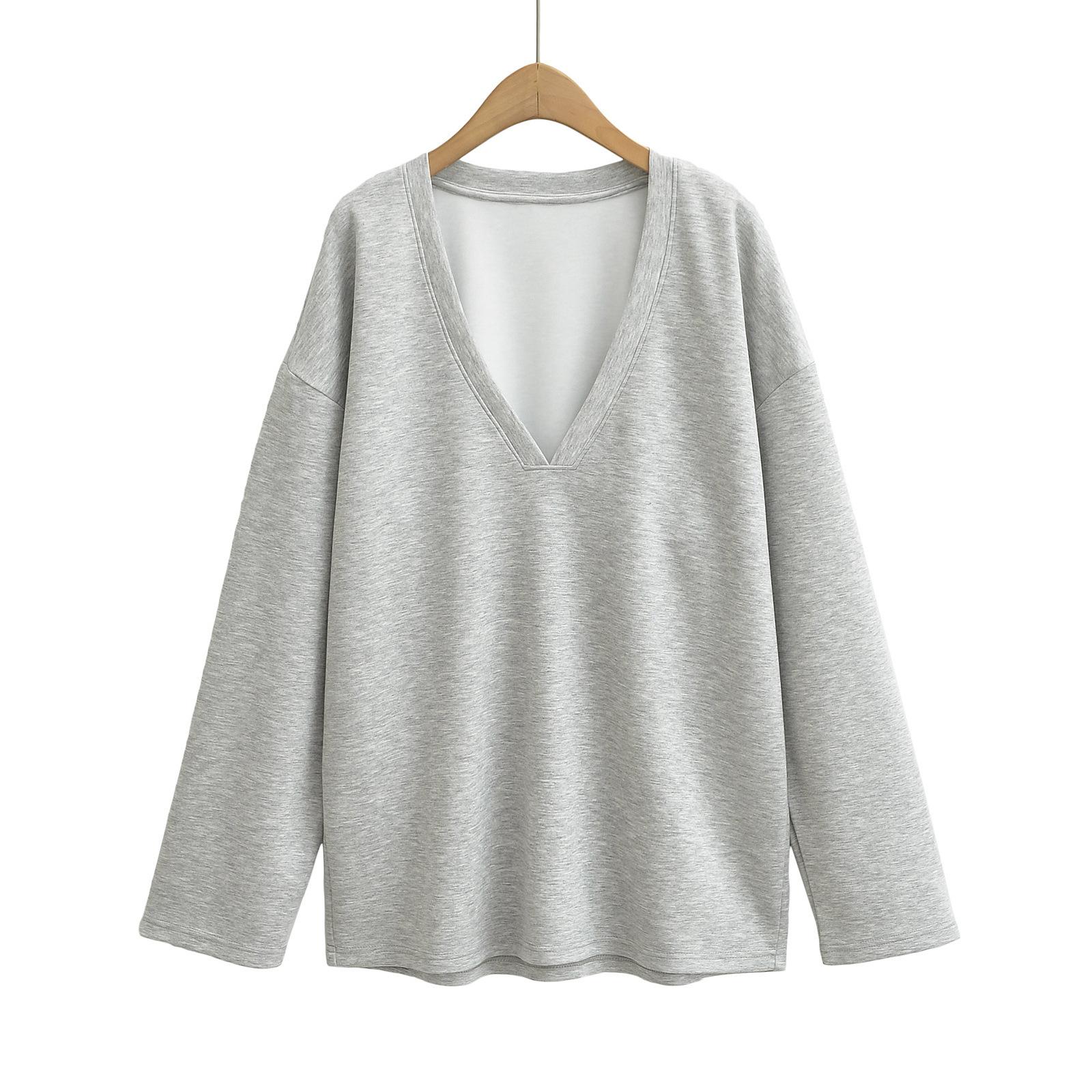 Blusa suelta de primavera y verano 2024, camiseta fina de manga larga con cuello en V y almohadilla para el pecho, espalda bonita