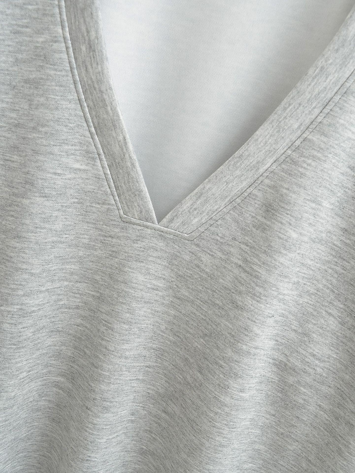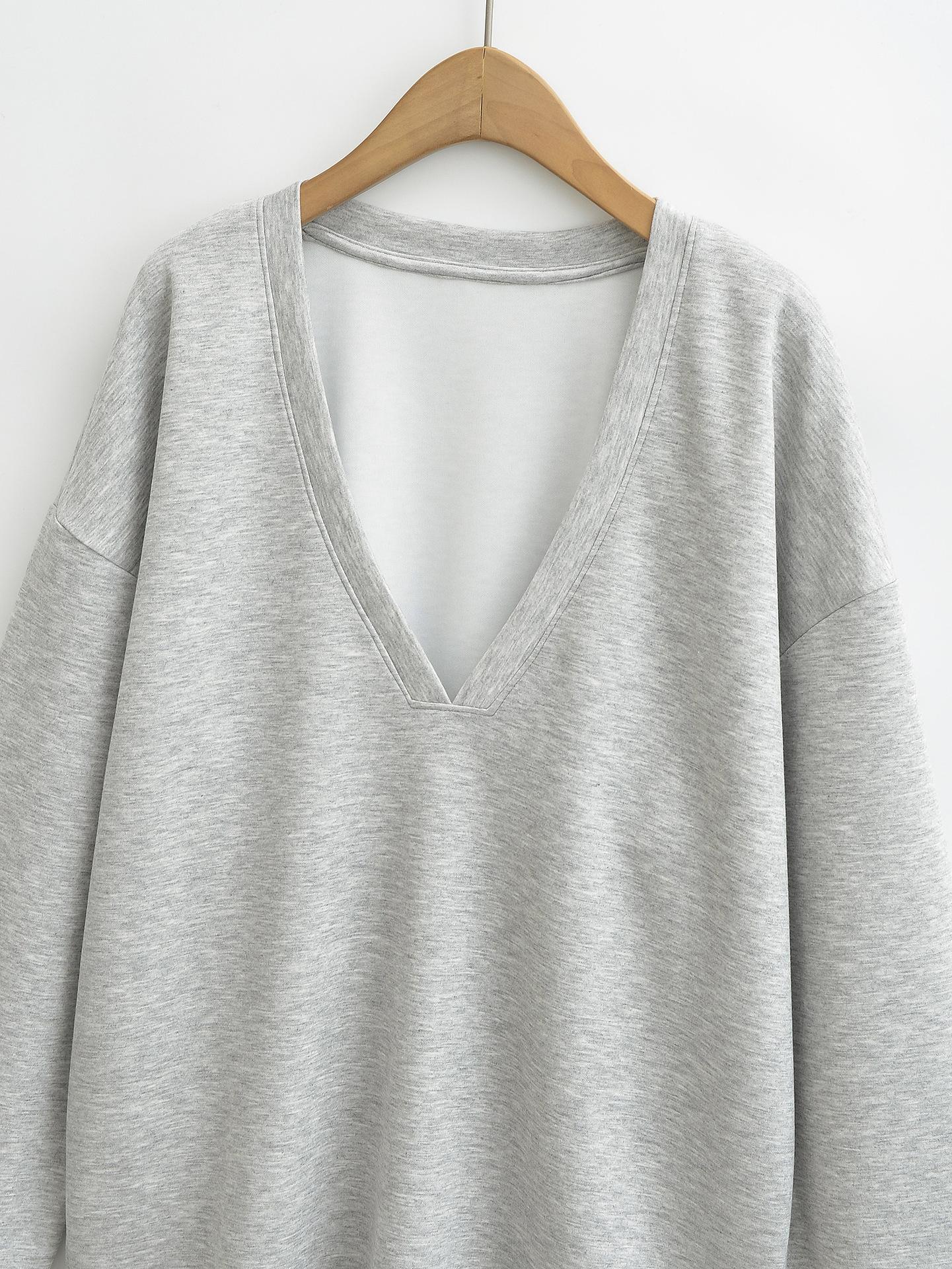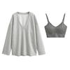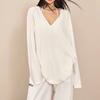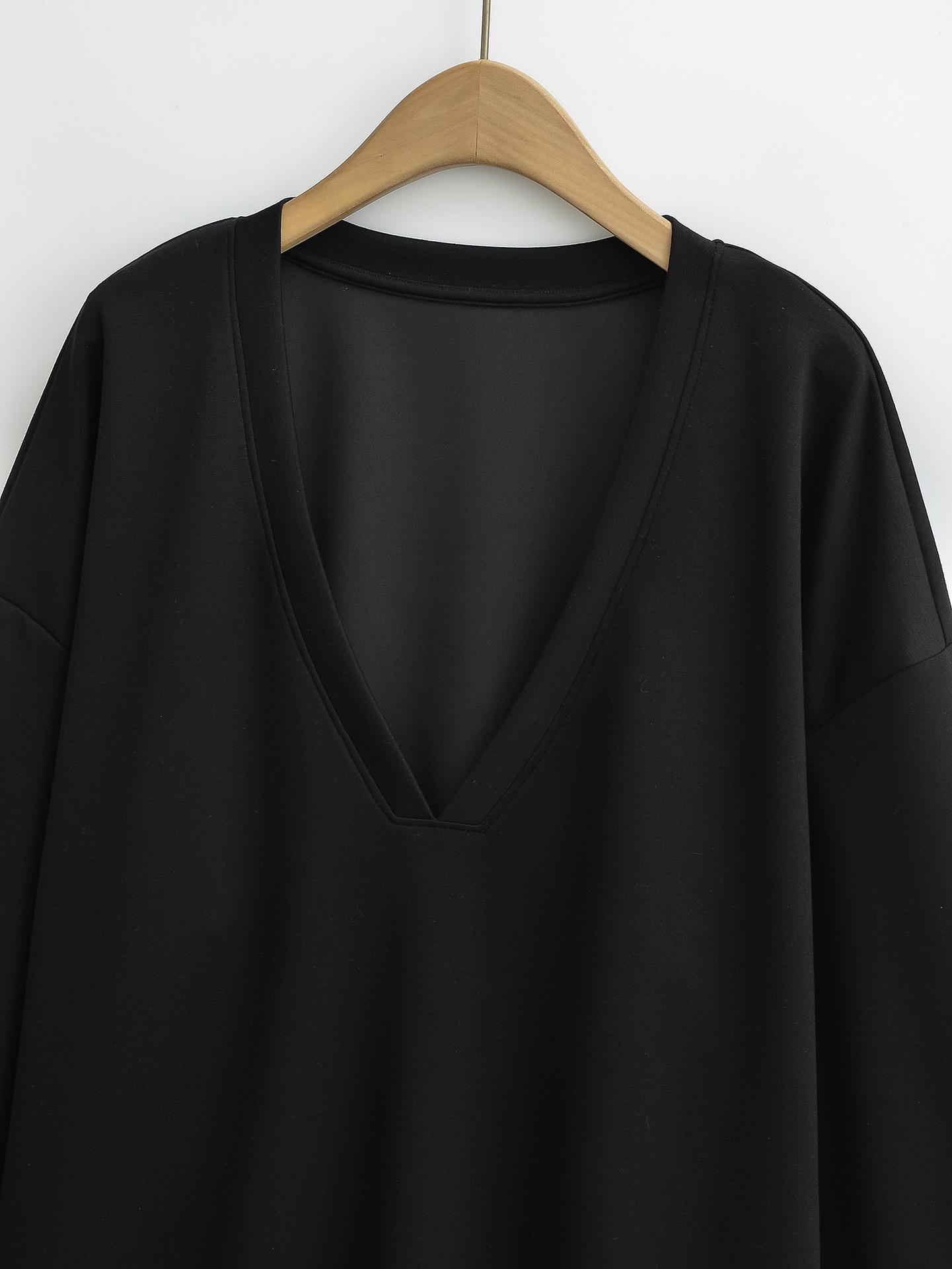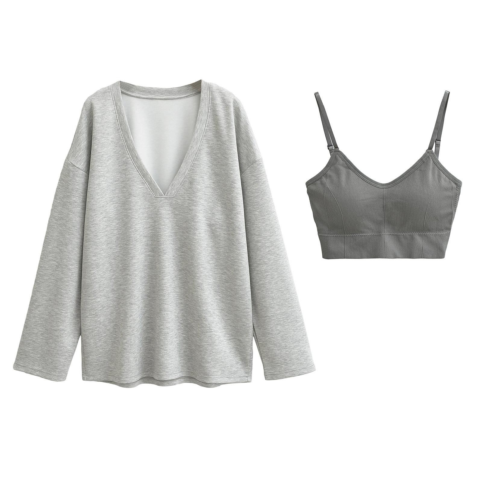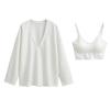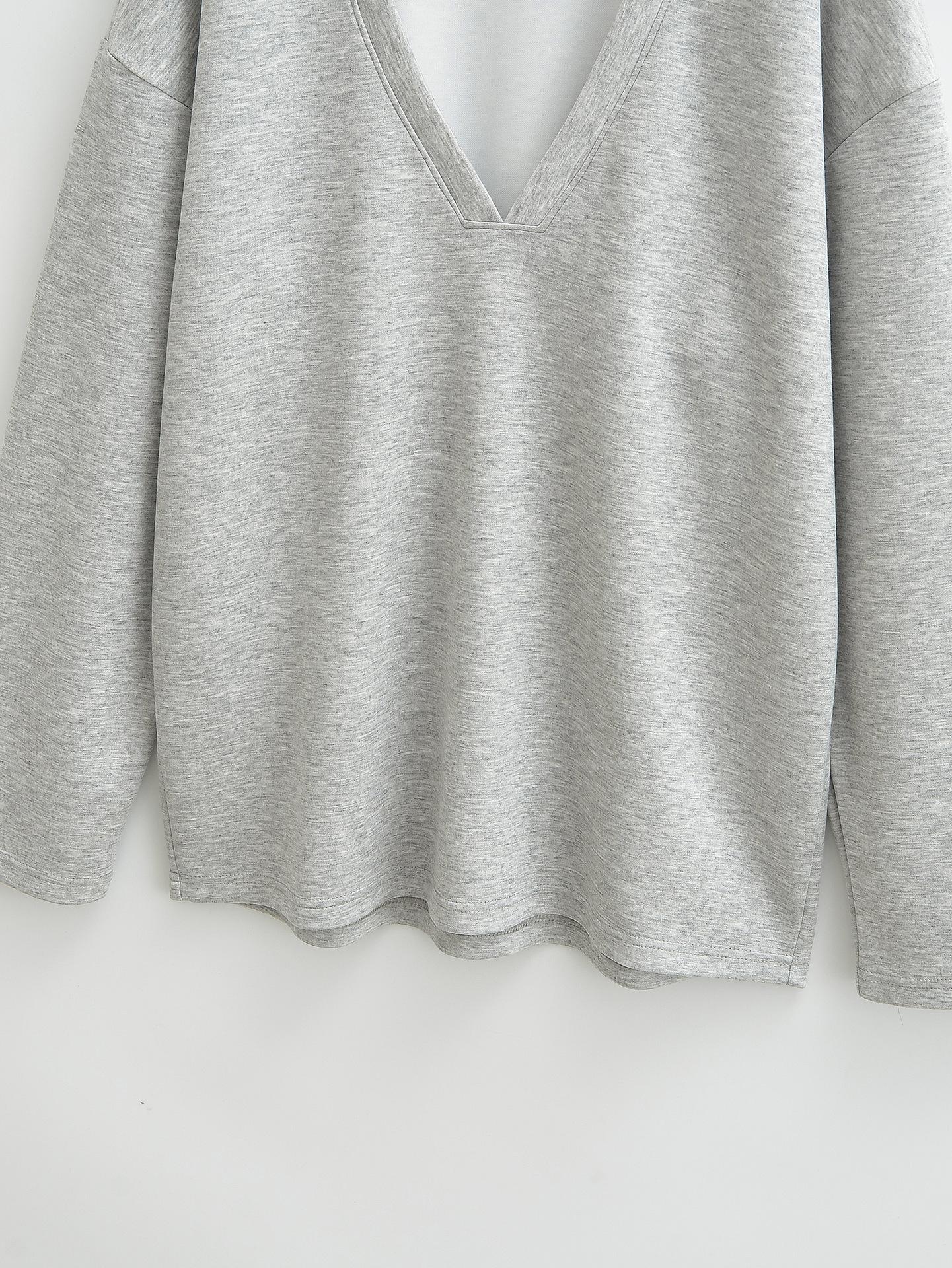 Blusa suelta de primavera y verano 2024, camiseta fina de manga larga con cuello en V y almohadilla para el pecho, espalda bonita