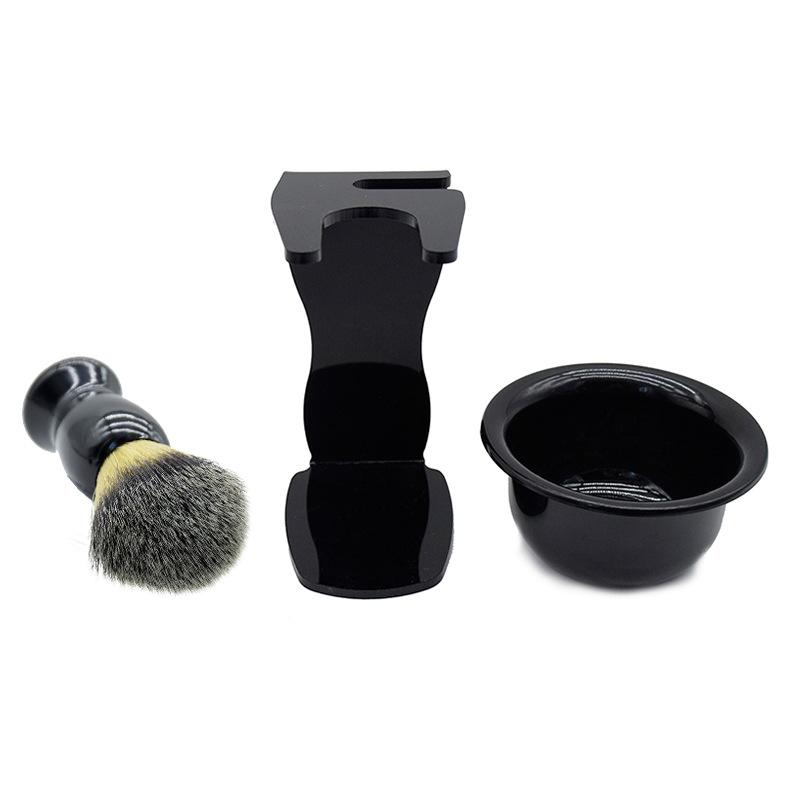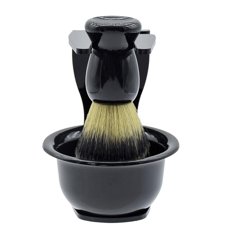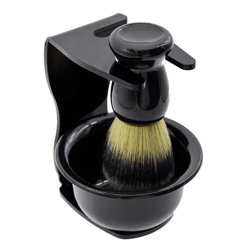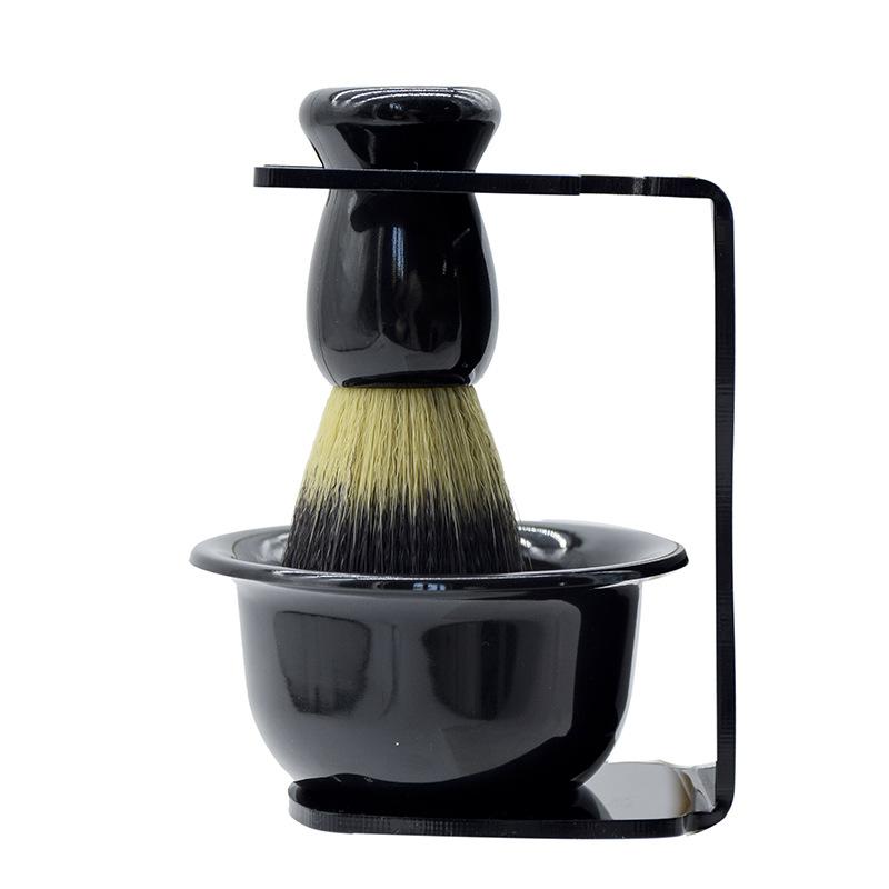 Limpieza facial transfronteriza peluquería cepillo para barba para hombre juego de tres piezas estante de almacenamiento para cepillo para barba tazón para espuma herramienta de peinado