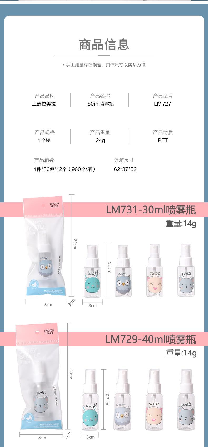 Lmltop Botella de Spray de 50ml Paquete Individual Botella de Spray de Mascota de Dibujos Animados Botella Vacía Botella Recargable para Cosméticos de Viaje