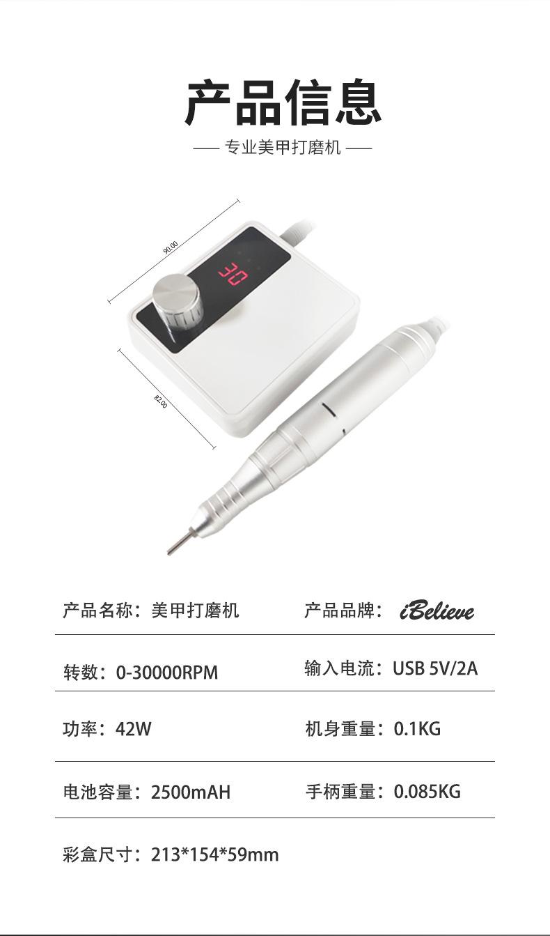 Popular Manicura Especial Amoladora Carga USB 30,000 Rpm Pantalla Esmalte de Uñas Mini Pulidor de Uñas Eléctrico Portátil