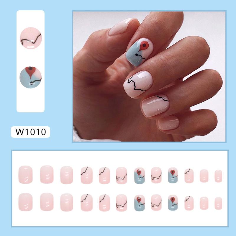Mapa de posicionamiento creativo de moda europea y americana corta verano linda chica dulce usar uña uñas postizas al por mayor