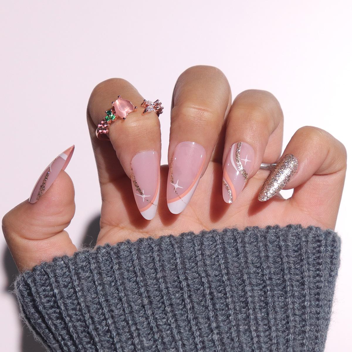 Línea de uñas artísticas para niñas Pure Desire de Advanced Wear Armor con purpurina en polvo, uñas postizas, uñas removibles y acabados.