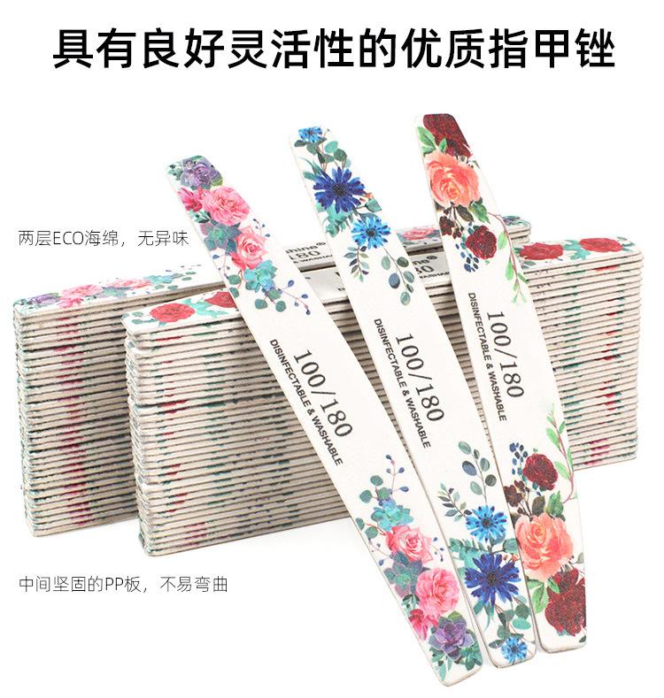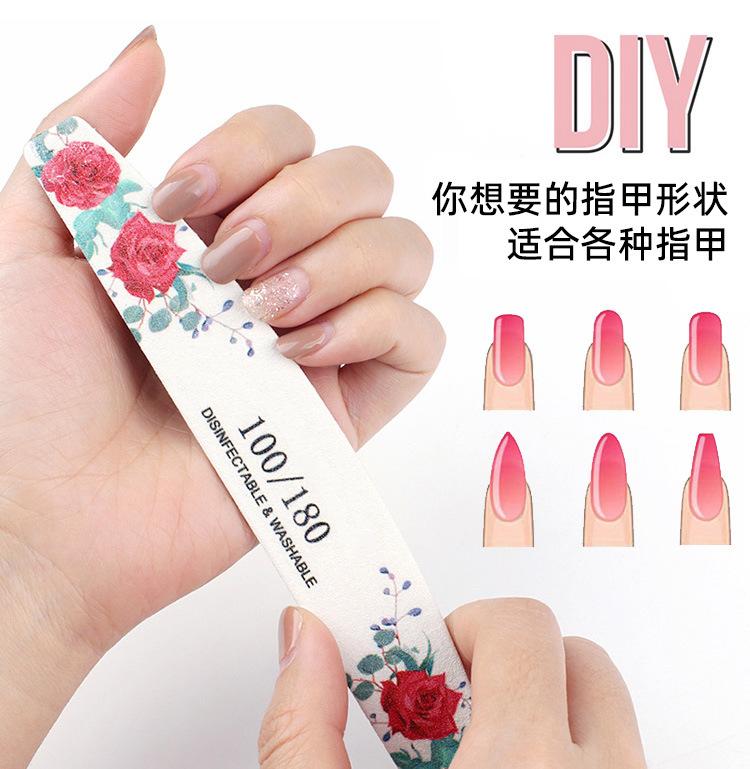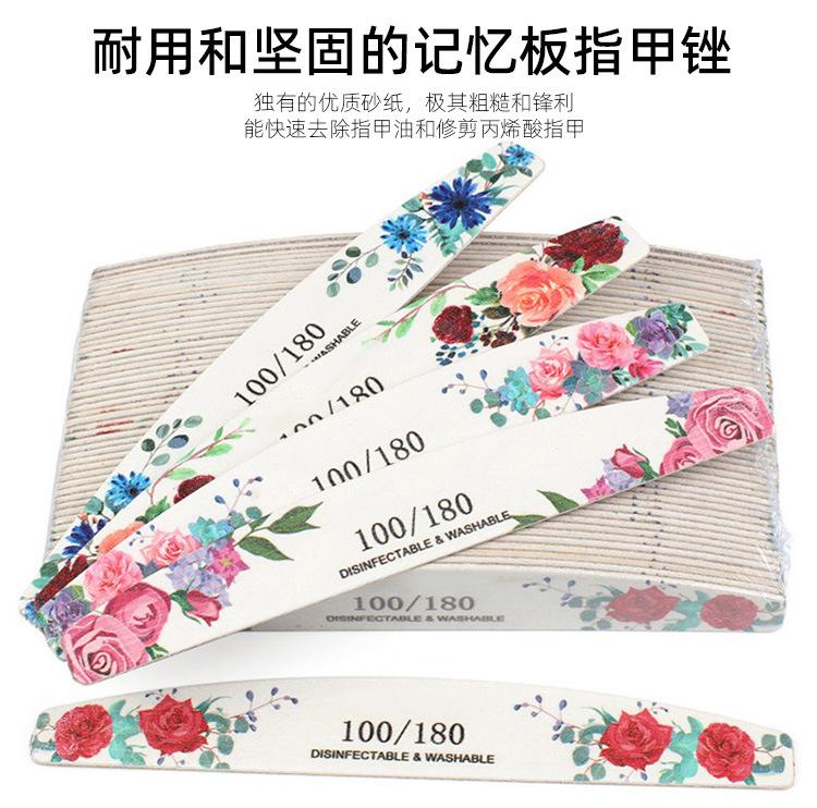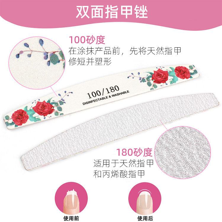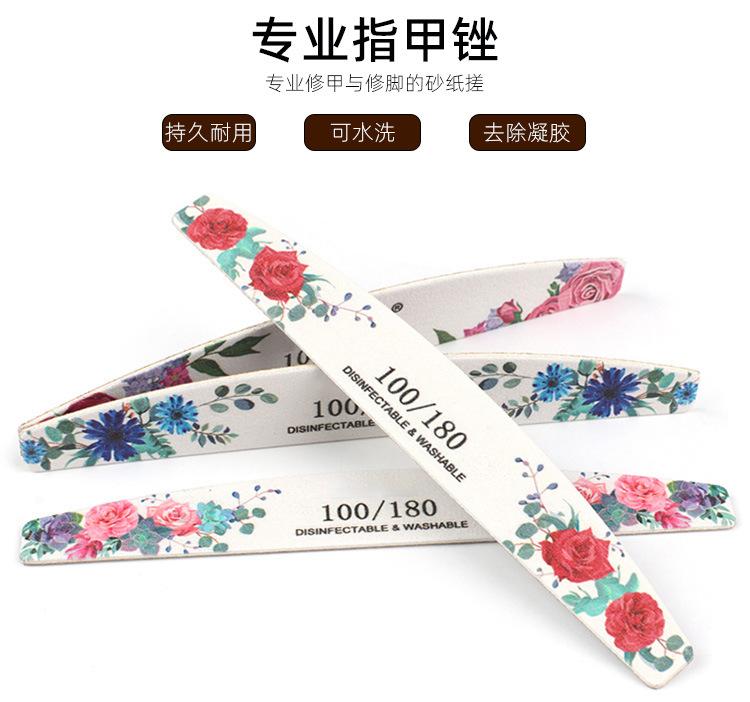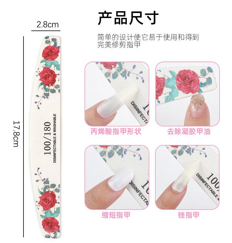 Lima de uñas de media luna, tira de pulido de uñas con forma de rosa, tira de arena, impresión a doble cara, herramienta para pulir uñas