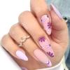 Lindo flor almendrado usar armadura estilo europeo y americano ins dulce púrpura simple manicura francesa uñas postizas al por mayor