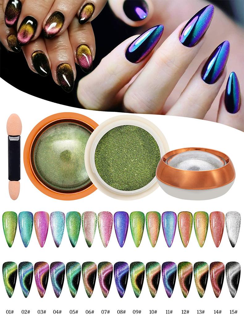 Compra Manicura Popular Transfronteriza Polvo Ojo de Gato 5D Polvo Ojo de Chinchilla Cambiante de Color de Alta Calidad Cristal Francés Degradado Polvo Magnético Súper Fuerte al por mayor en Joom.pro