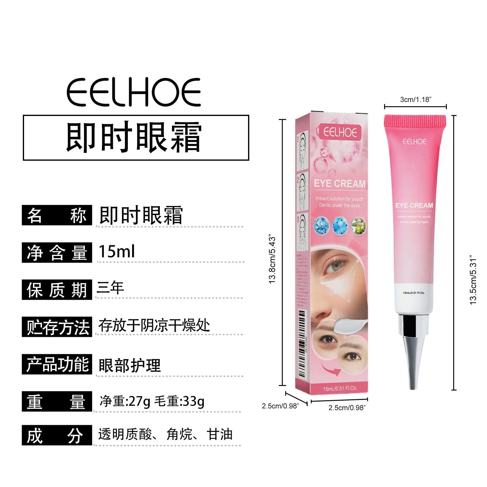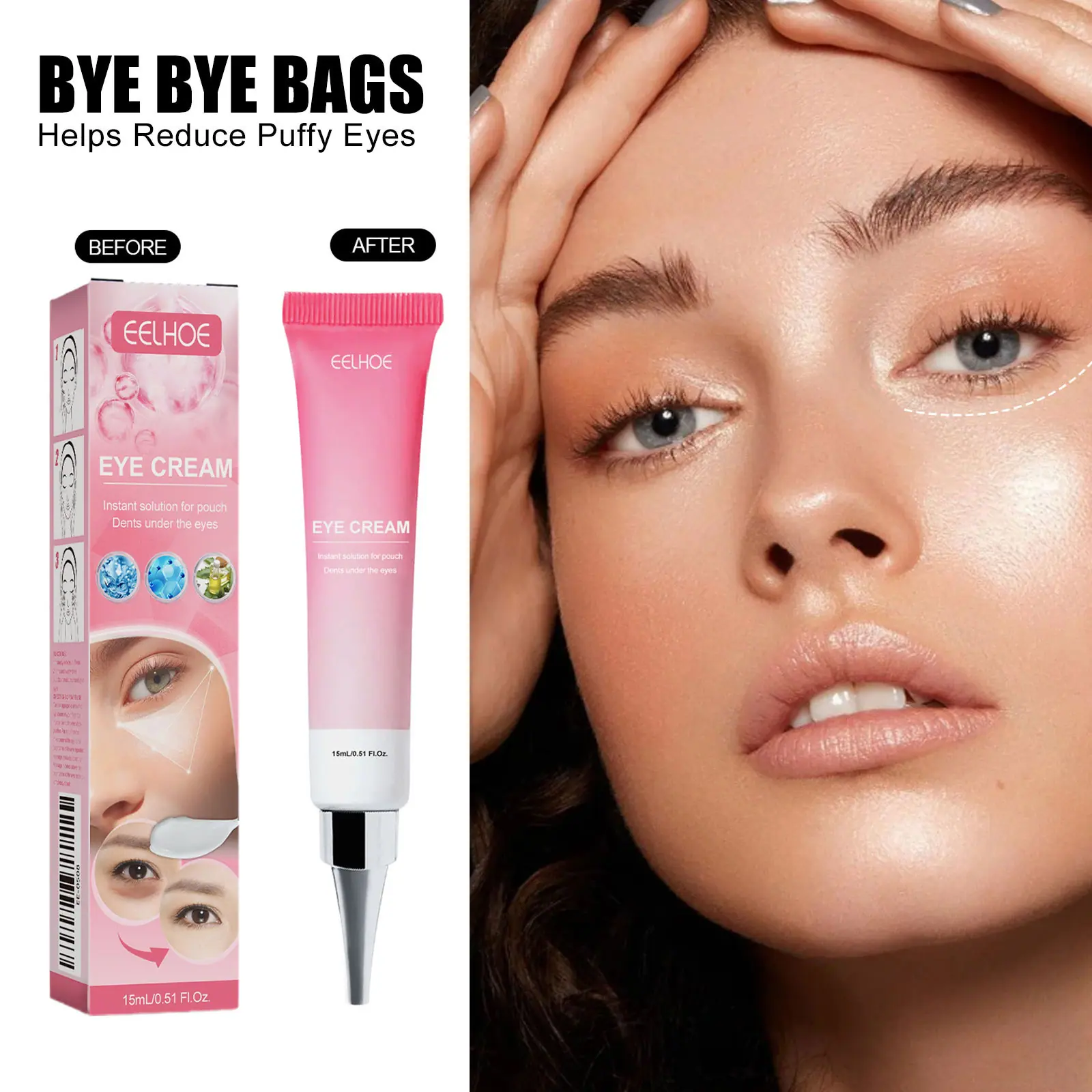 Eelhoe Crema Instantánea para Ojos Crema Refrescante e Hidratante para Ojos que Cuida la Piel Alrededor de los Ojos, Crema para Ojos Suave y Elástica