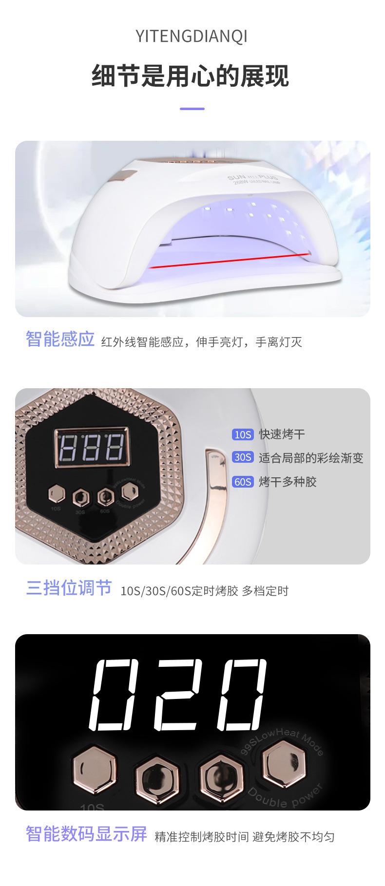 Lámpara de Manicura Inteligente Sin Manos Negras Esmalte de Uñas Pegamento Lámpara de Horneado para Manicura 268W Alta Potencia Led Lámpara de Fototerapia para Manicura Secador
