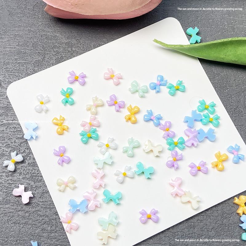 Nuevo mini lazo de color macarrón, accesorios para decoración de uñas, accesorios luminosos mixtos para decoración de uñas, lazo francés