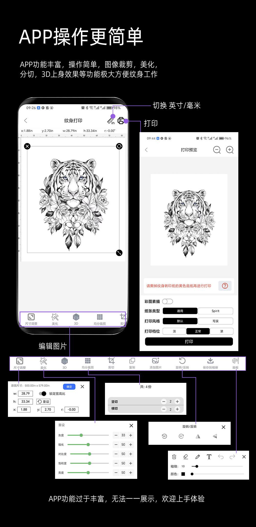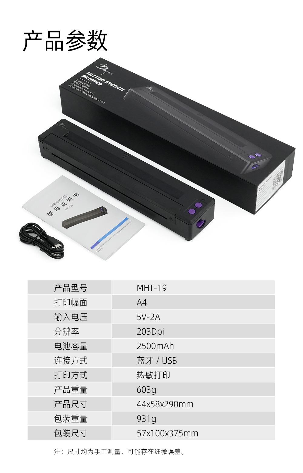 P19 Máquina Inalámbrica para Tatuajes Transferencia Mate Impresora Térmica Portátil Dibujo de Líneas Patrón Claro Realista Herramienta