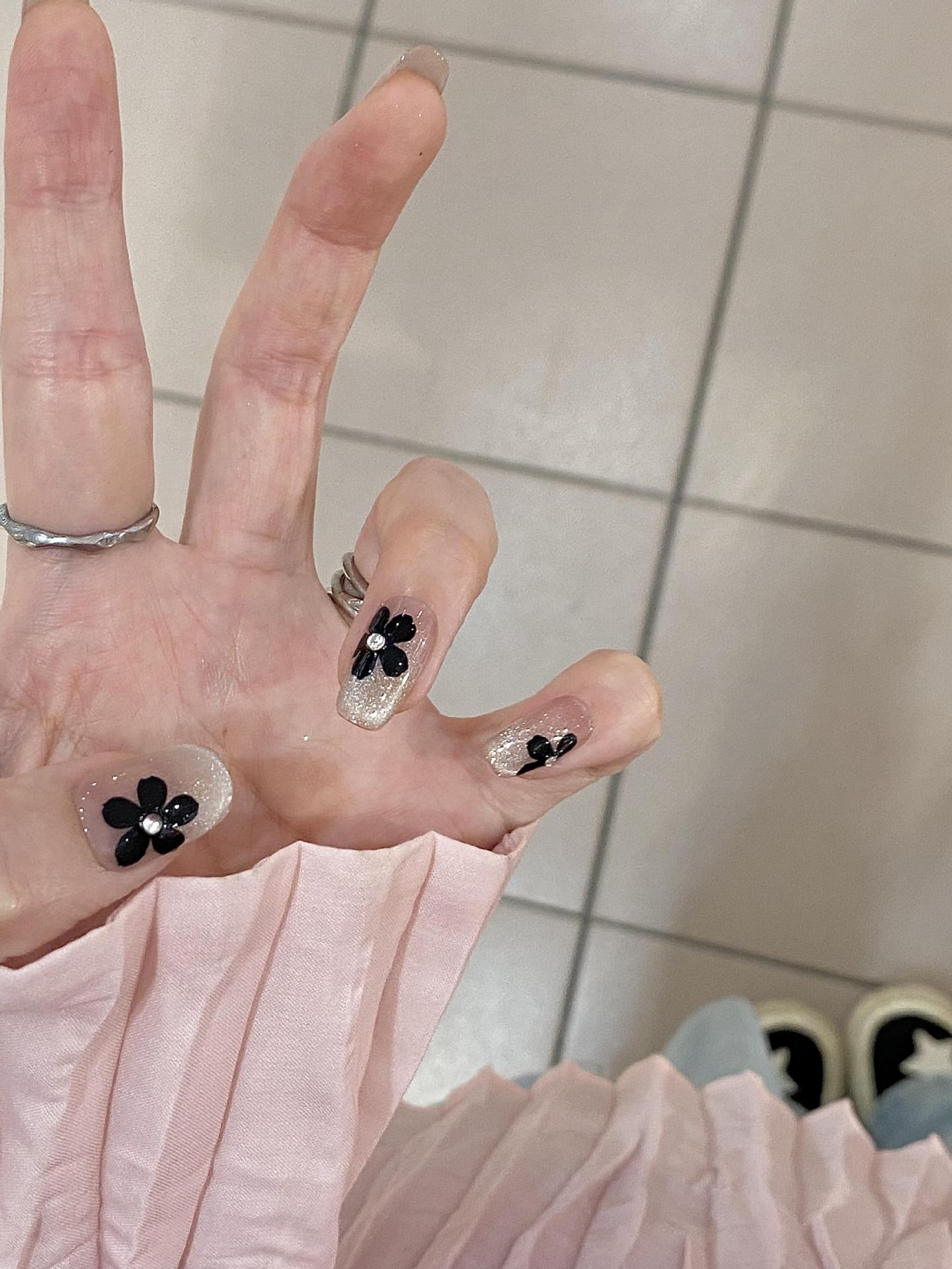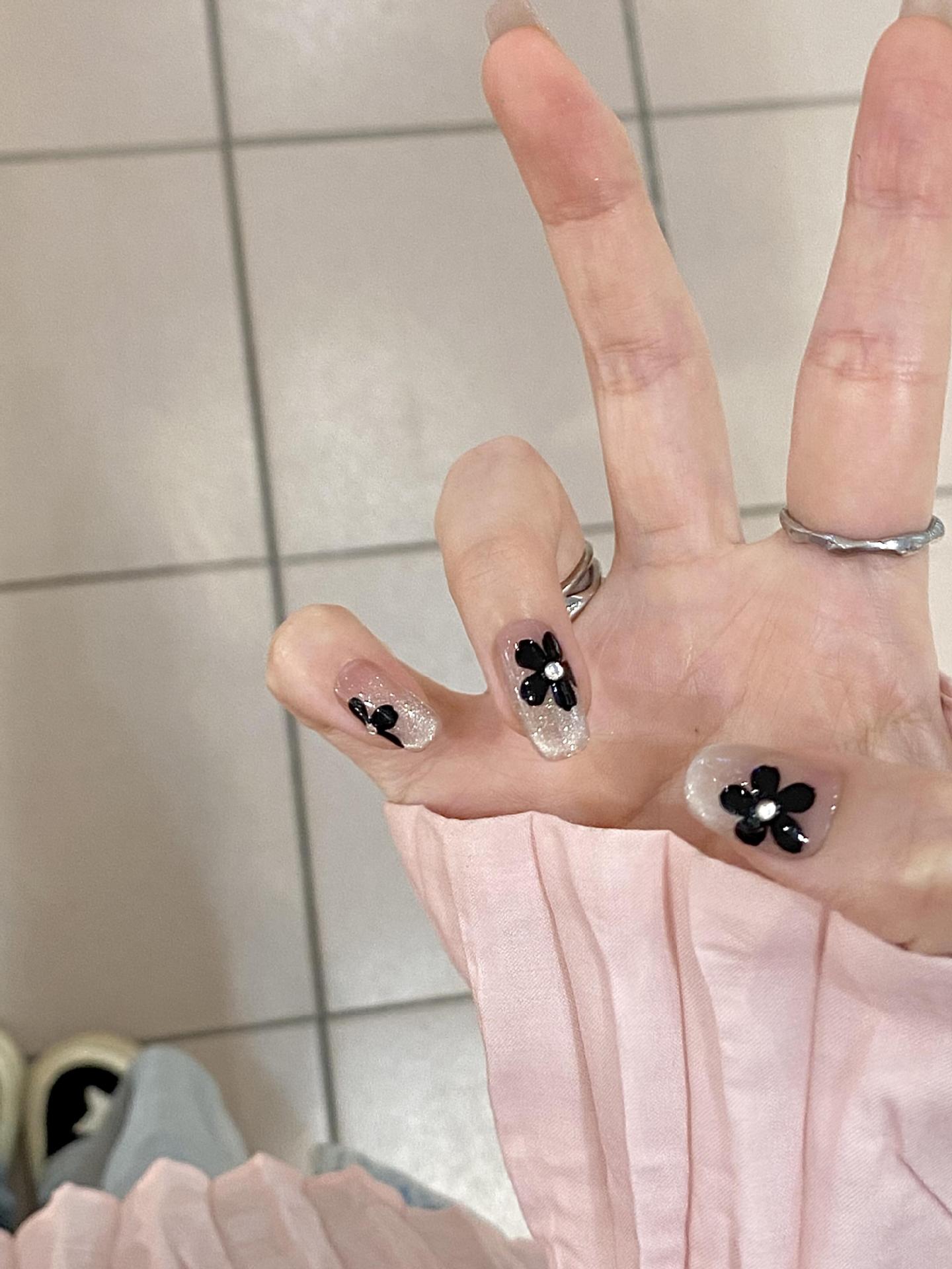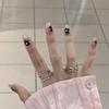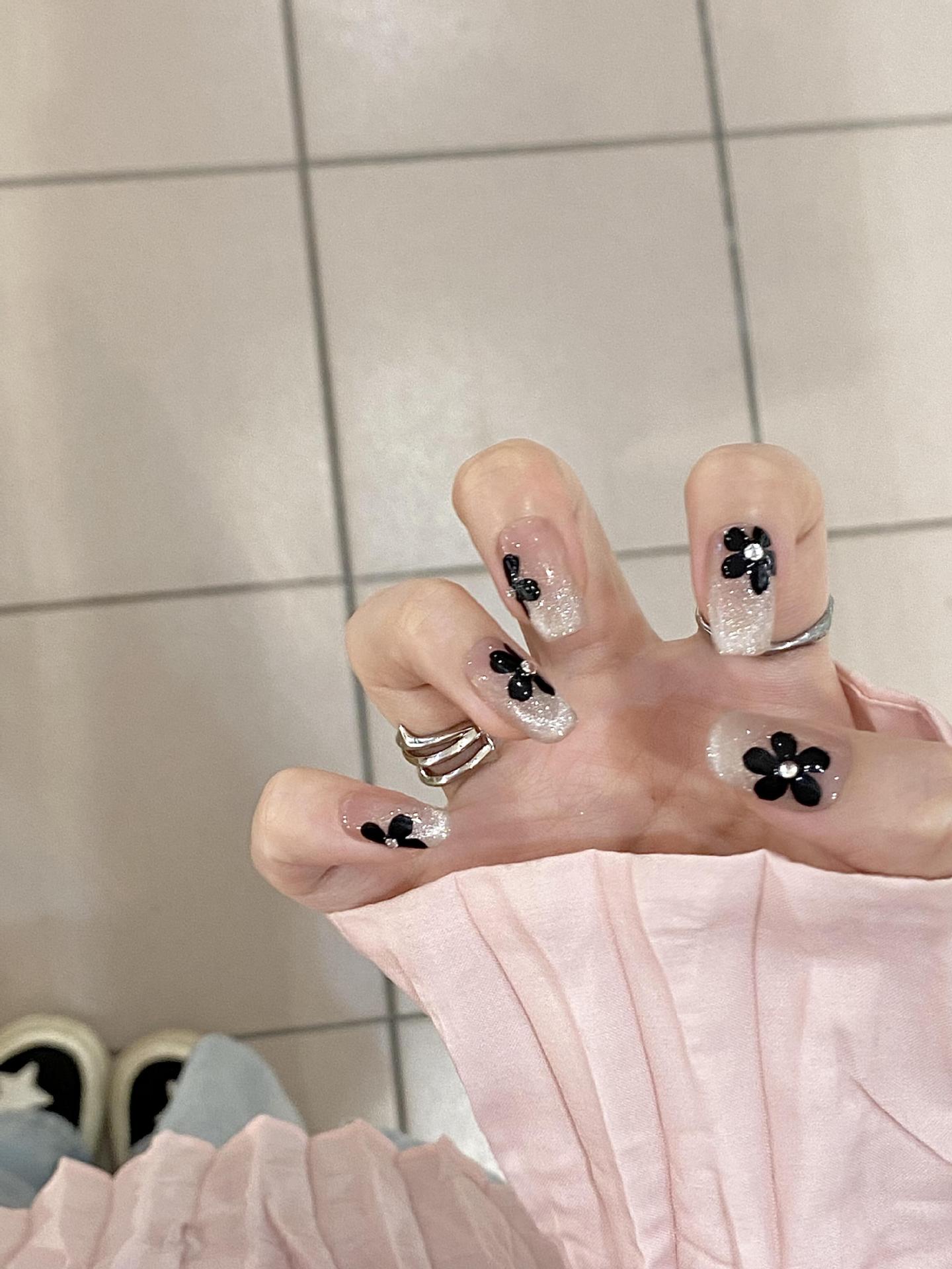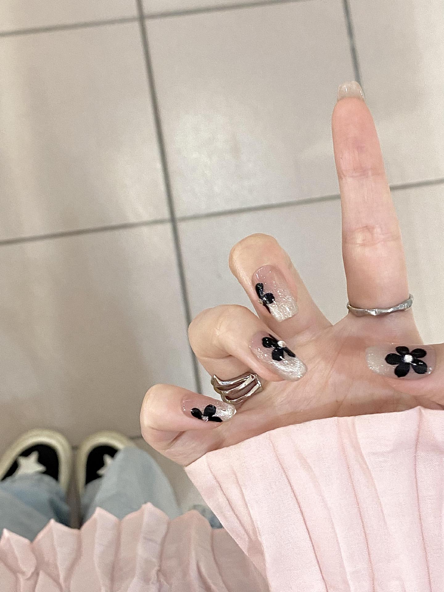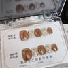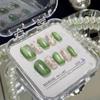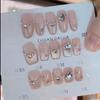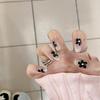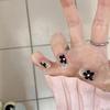 Producto terminado de uñas postizas con diseño de ojo de gato, flor pequeña pintada a mano, uñas blancas cortas, parche boutique de alta gama