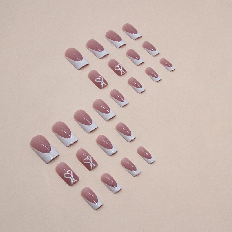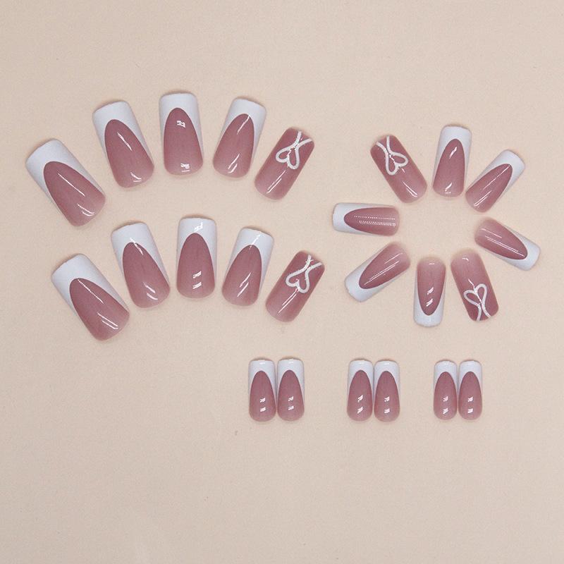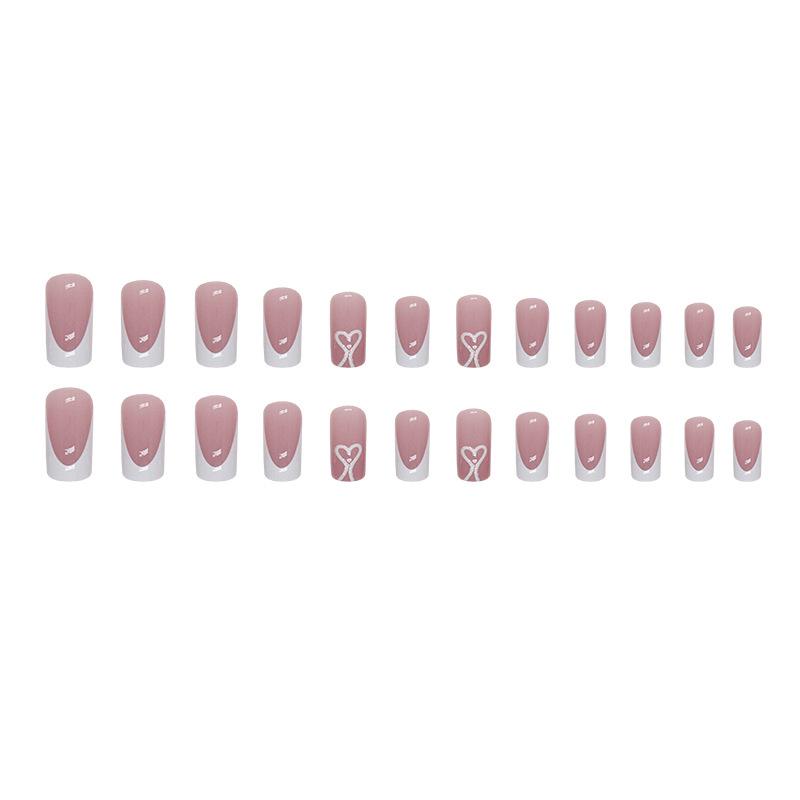 Manicura francesa sencilla de amor blanca, uña postiza cuadrada de longitud media europea y americana, acabado para usar en lotes mixtos