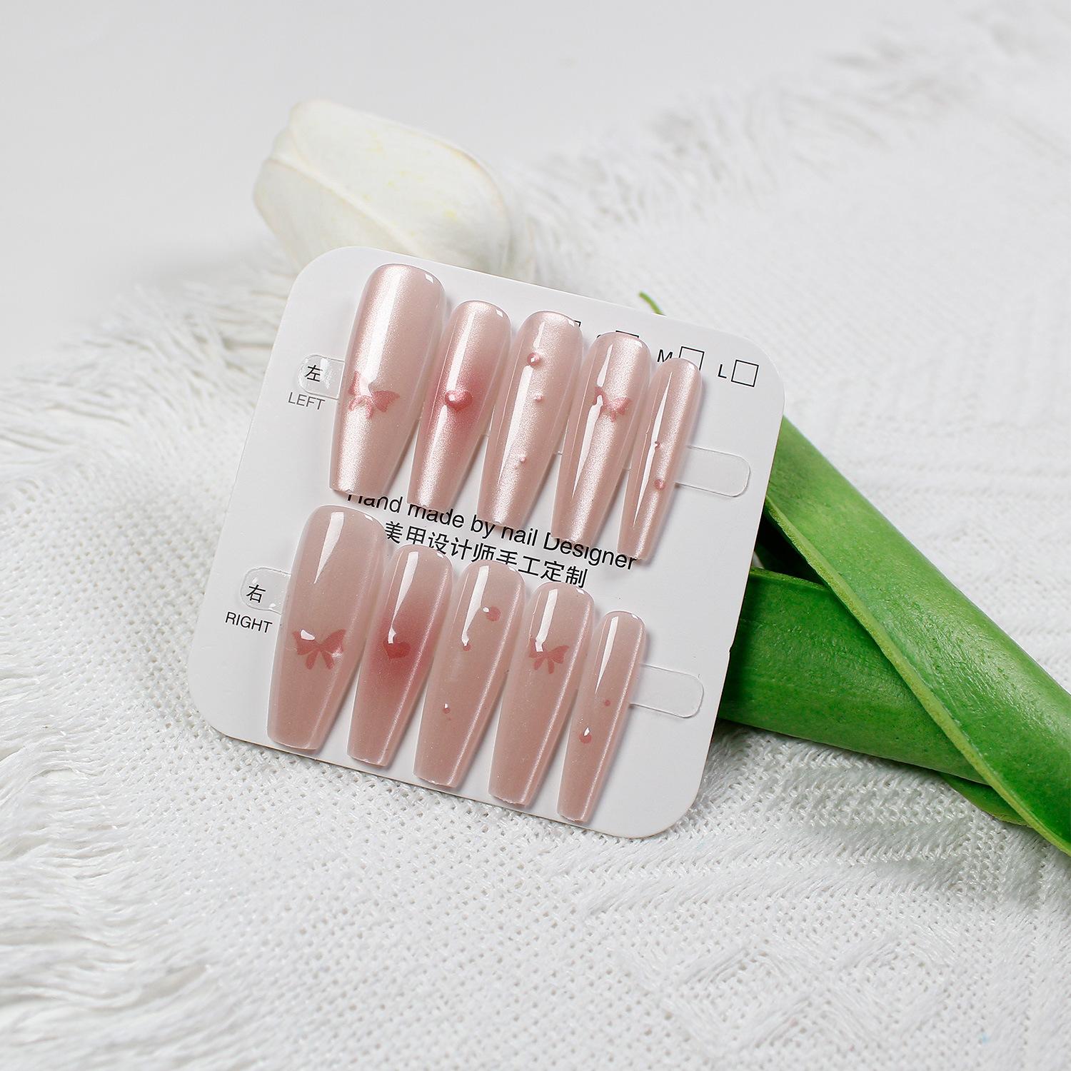 [Jiaolong] Nuevas uñas postizas de mariposa con diseño de ojo de gato, hechas a mano, con acabado en pasta, uñas postizas extraíbles de ojo de gato.